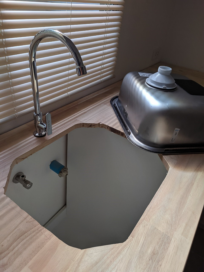 จากนั้นก็ใส่เจาะรูซิงค์ เลื่อยจิ๊กซอ ไม่มีครับ ใช้เลื่อยวงเดือนกับเลื่อยพูลซอตัดเอา