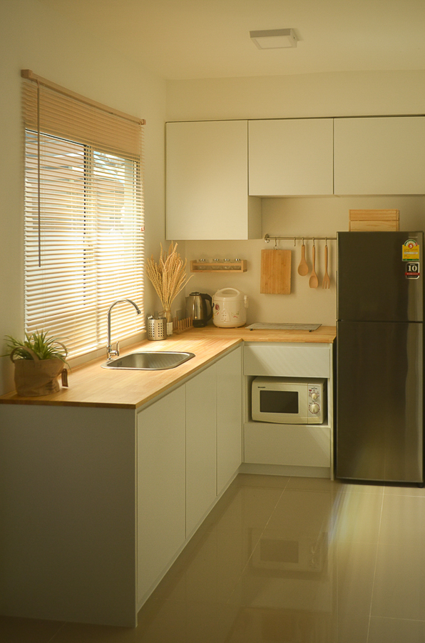 DIY “ทำห้องครัวด้วยตัวเอง” ดีไซน์เรียบง่ายอบอุ่น ออกแบบเอง ติดตั้งเอง แต่สวยเหมือนช่างมาทำให้