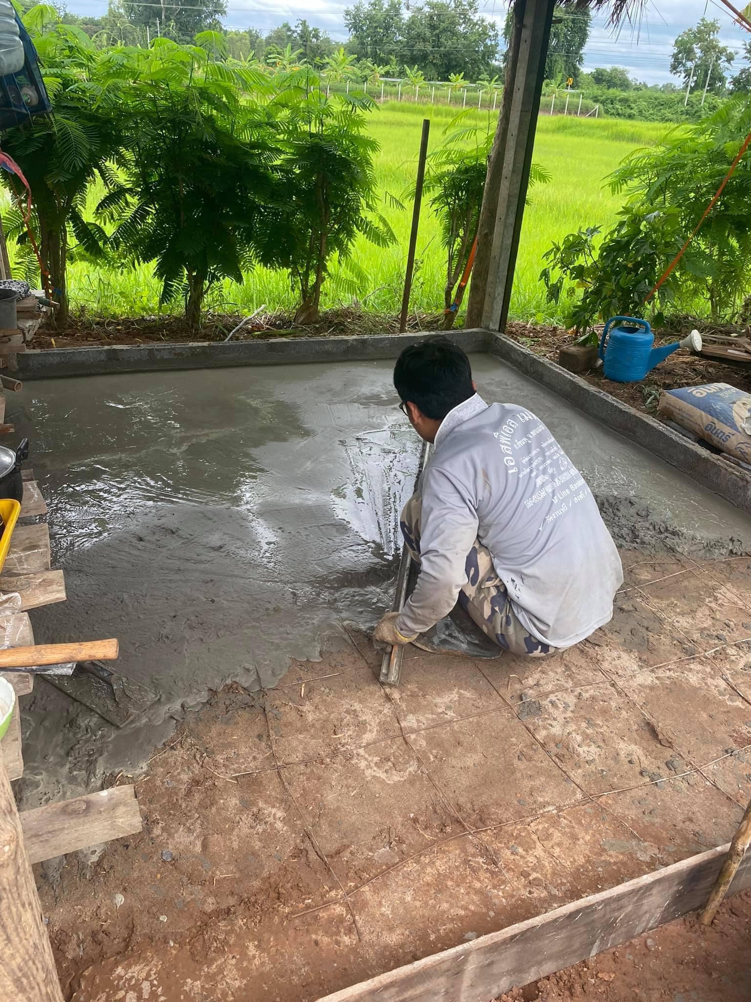 จากนั้นจึงวางโครงเหล็กแล้วเทปูนเพื่อทำพื้น
