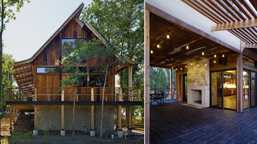 สำหรับวันนี้ ในบ้าน ก็มีตัวอย่างของ บ้านสไตล์ Dogtrot มาฝากชาวเว็บทุกท่าน เป็นดีไซน์บ้านสองชั้นขนาดพอเหมาะ ก่อตั้งอยู่บนพื้นที่ป่าที่รายล้อมไปด้วยต้นไม้และทุ่งดอกไม้สีสวย โครงสร้างบ้านไม้กึ่งปูนได้รับการออกแบบมีให้รูปทรงสี่เหลี่ยมผืนผ้า เพื่อให้บ้านทั้งสองหลังสามารถสร้างอยู่ใกล้กันได้อย่างสะดวก