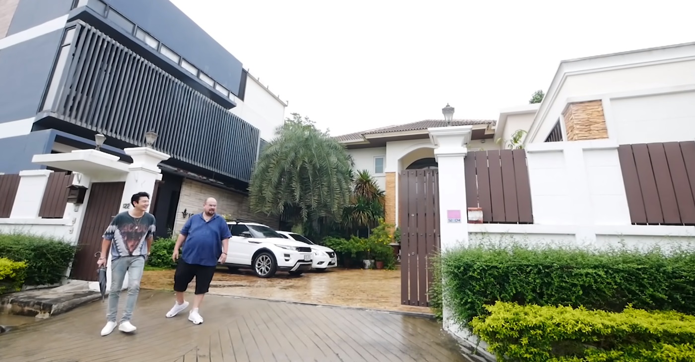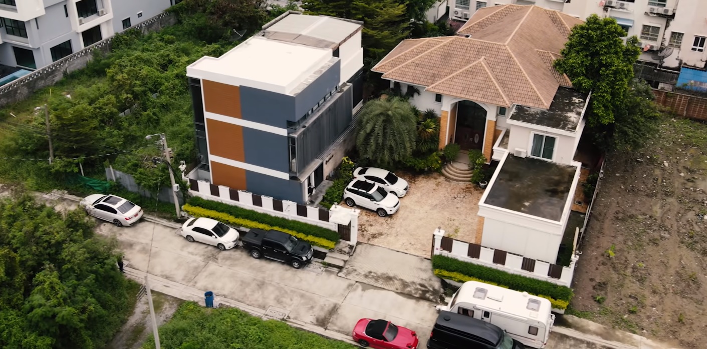 จากภาพมุมสูงนี้ เราจะเห็นบ้านของคุณโดมได้อย่างชัดเจน ซึ่งจะแบ่งเป็นพื้นที่สองส่วนใหญ่ ๆ โดยอาคารทางด้านขวาจะเป็นบ้านพัก ในขณะที่ตึกทางด้านซ้ายจะเป็นอาคารสำนักงานและห้องอัดเสียง