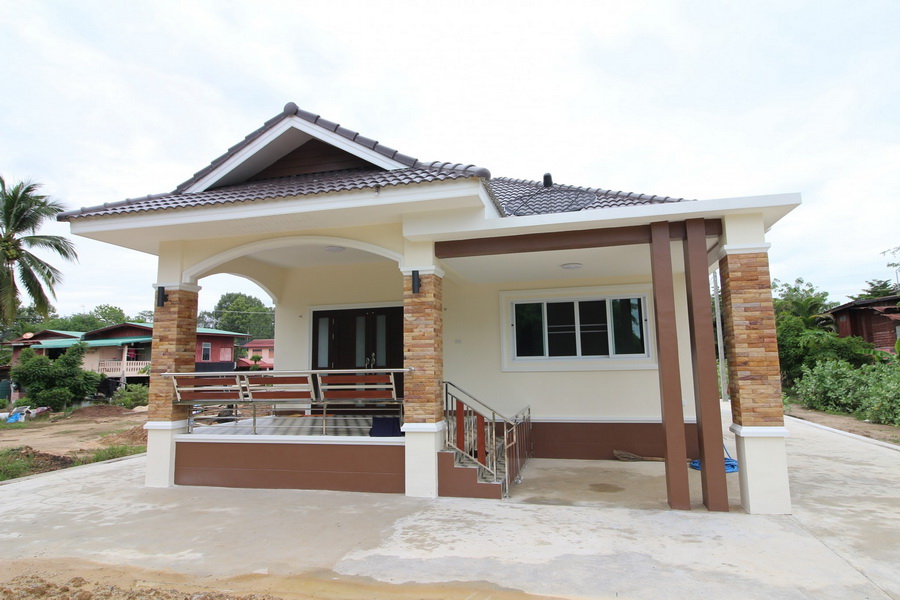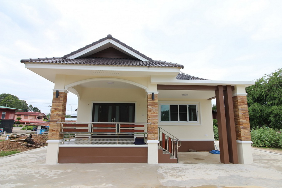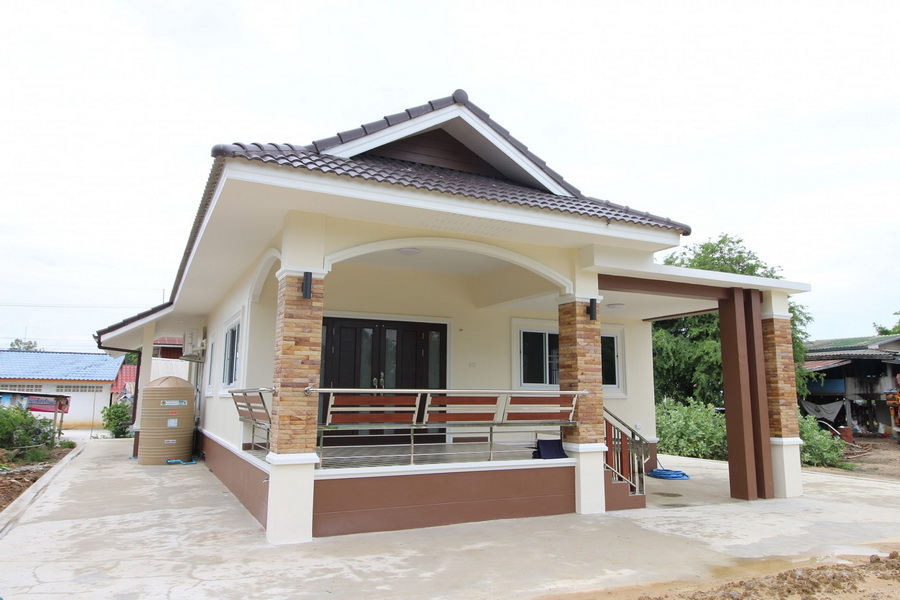 บ้านหลังนี้เป้นบ้านชั้นเดียว ฐานของบ้านถูกยกขึ้นสูง ตัวบ้านมีดีไซน์แบบคอนเทมโพรารี ความโดดเด่นจะอยู่ที่การออกแบบหลังคาทรงมะนิลาที่มุงด้วยกระเบื้องลอนสีเข้ม ด้านการตกแต่งนั้น ผนังภายนอกเลือกใช้โทนสีครีมผสานกับโทนสีน้ำตาลอย่างลงตัว