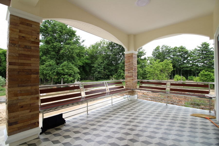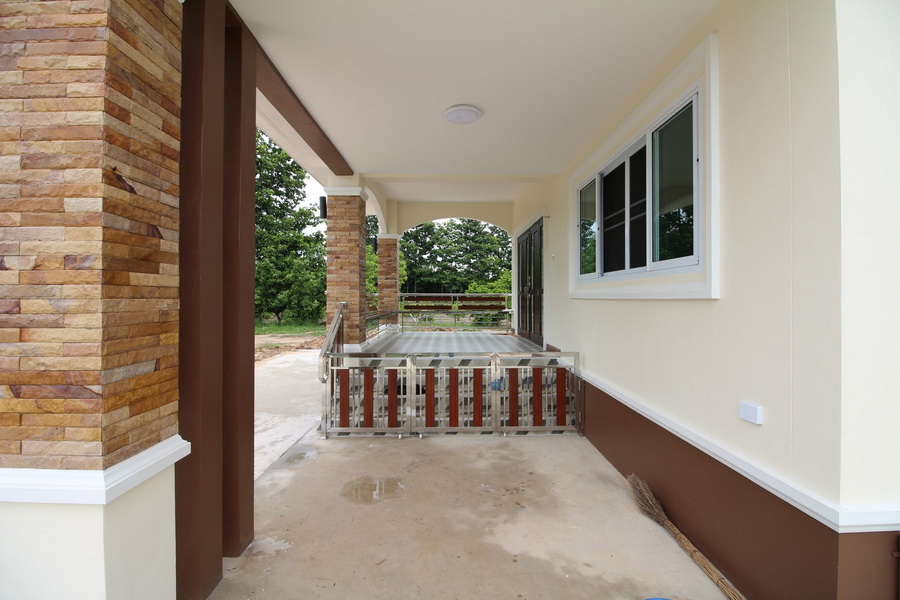 นอกจากนี้ยังออกแบบให้มีเฉลียงกว้างด้านหน้าที่มาพร้อมกับม้านั่งยาว จึงเป็นพื้นที่เพื่อกิจกรรมสำหรับครอบครัวโดยเฉพาะ