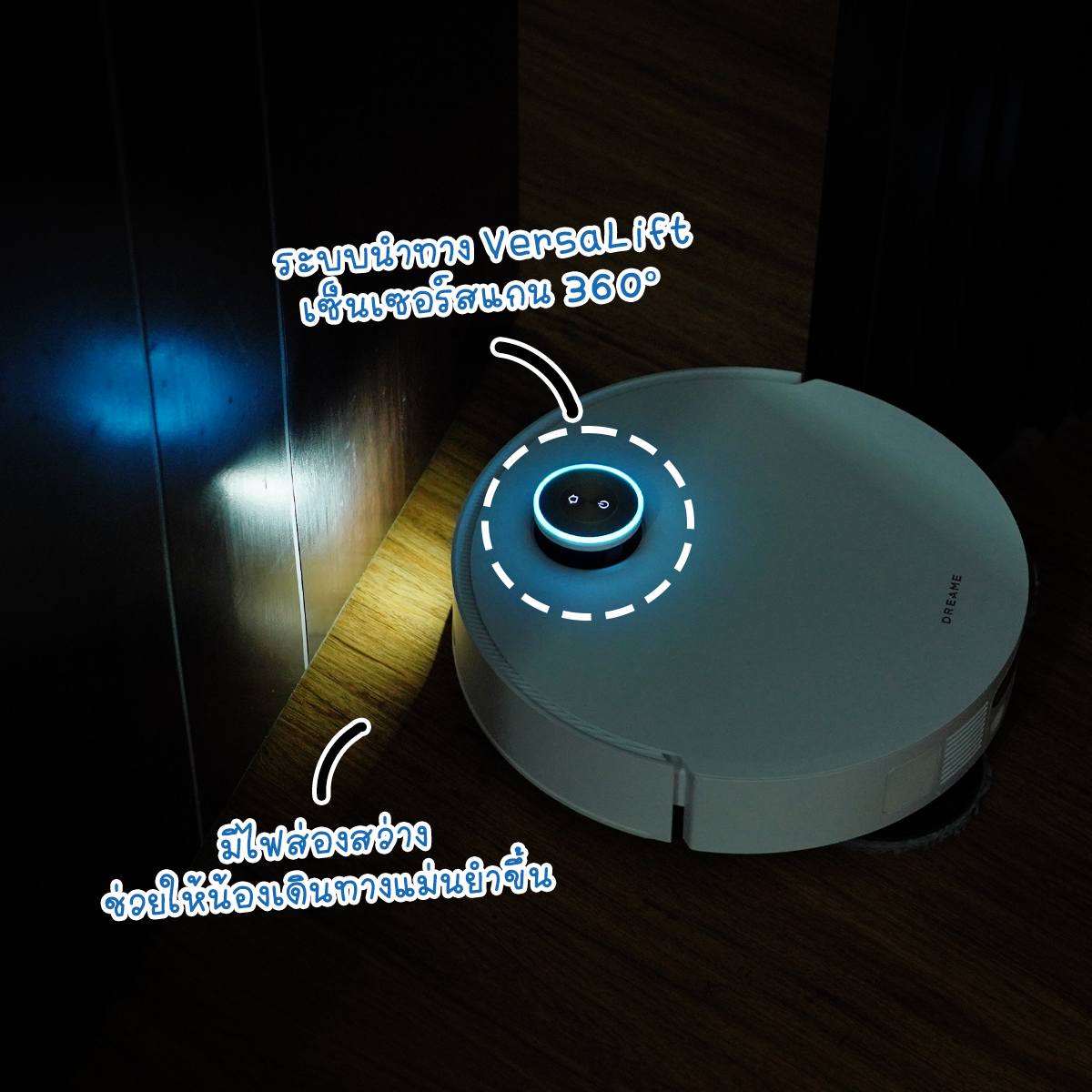 อีกจุดที่ชอบคือพอเข้าในส่วนที่มืดหน่อย ไฟน้องจะเปิดอัตโนมัติ เพื่อให้ตรวจจับทิศทางและก็สิ่งที่จะไปทำความสะอาดได้ชัดเจนขึ้น