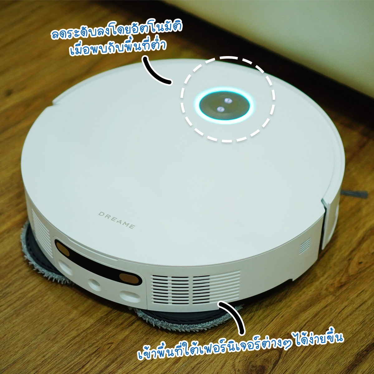 ซึ่งเซนเซอร์ที่ว่าเมื่อกี้ จะสามารถลดระดับลงเองได้ เพื่อลดความสูงของตัวเองลง สำหรับเข้าพื้นที่ต่างๆ เช่น ใต้เตียง ใต้โซฟา ได้ง่ายขึ้น