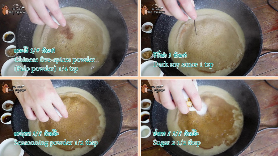 7. พอน้ำเดือด ใส่ผงพะโล้ ซีอิ้วขาว ผงปรุงรส น้ำตาล