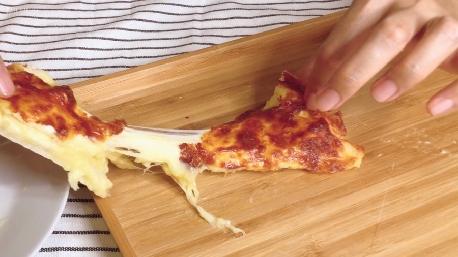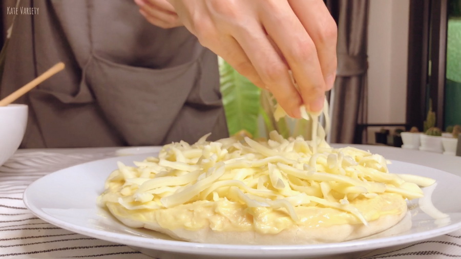 4. โรยมอสซาเรลล่าชีสปริมาณตามต้องการได้เลย