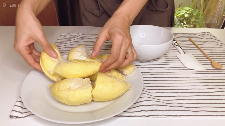 1. เนื้อทุเรียน 150 g (ประมาณ 1 เม็ด)