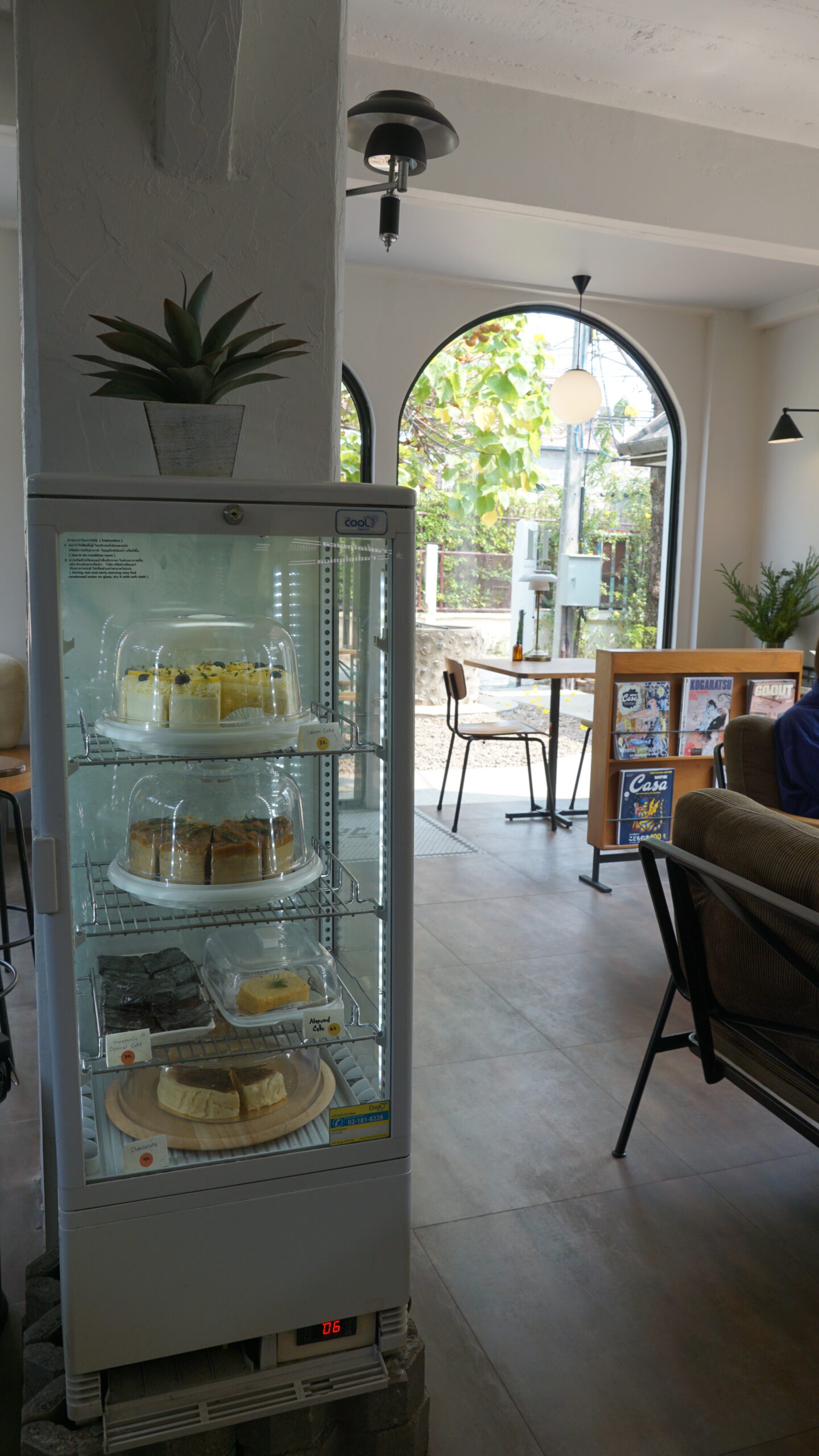 ด้านหน้าเคาน์เตอร์บาร์มีตู้ขนมเค้กต่าง ๆ ให้เลือกชิมกันอย่างจุใจ