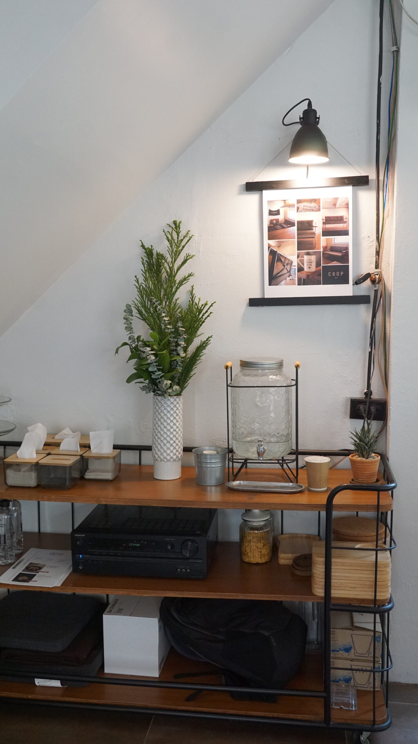 โคมไฟดวงนี้เป็นเฟอร์นิเจอร์ที่ทางร้านได้เดินทางไปซื้อไกลถึงประเทศเดนมาร์ก ตัวโคมไฟมีดีไซน์ที่เรียบง่าย จึงเข้ากับความเรียบง่ายในแบบสแกนดิเนเวียนของร้าน