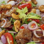 1. เริ่มจากเตรียมส่วนผสมของซอส โดยนำมะม่วงห่ามมาสับละเอียด ตามด้วยมะเขือเทศสับ และเห็ดฟางสไลด์