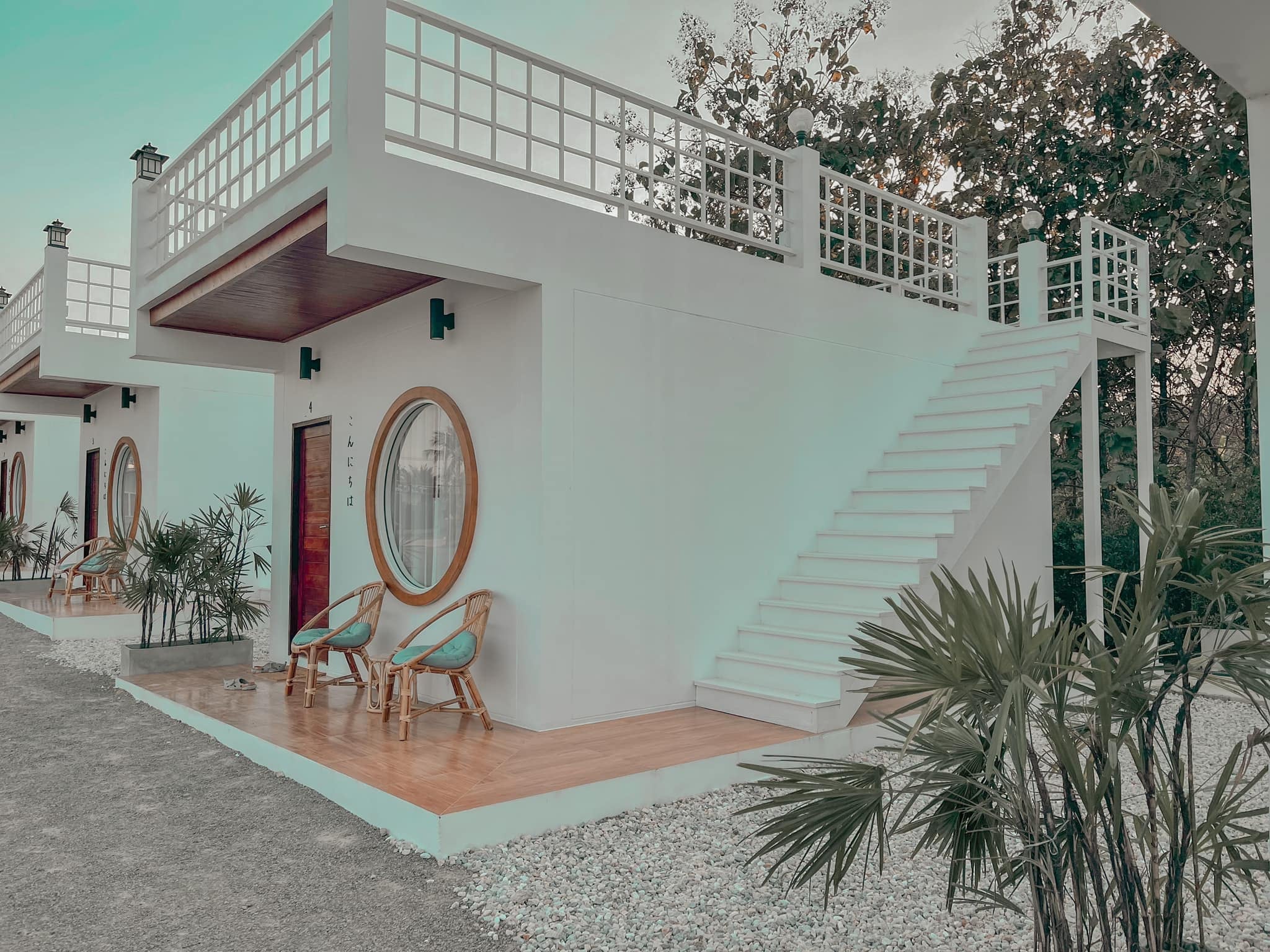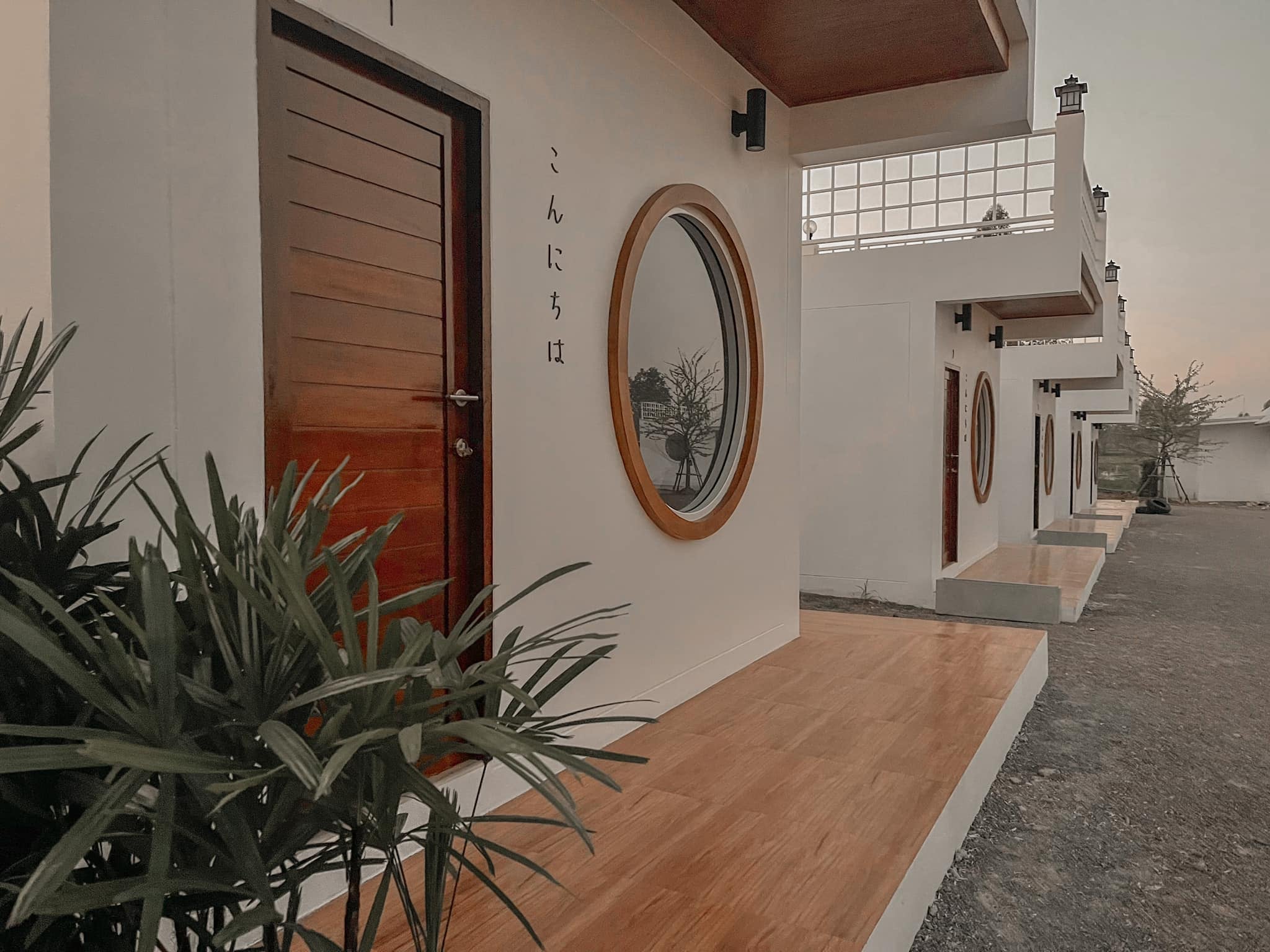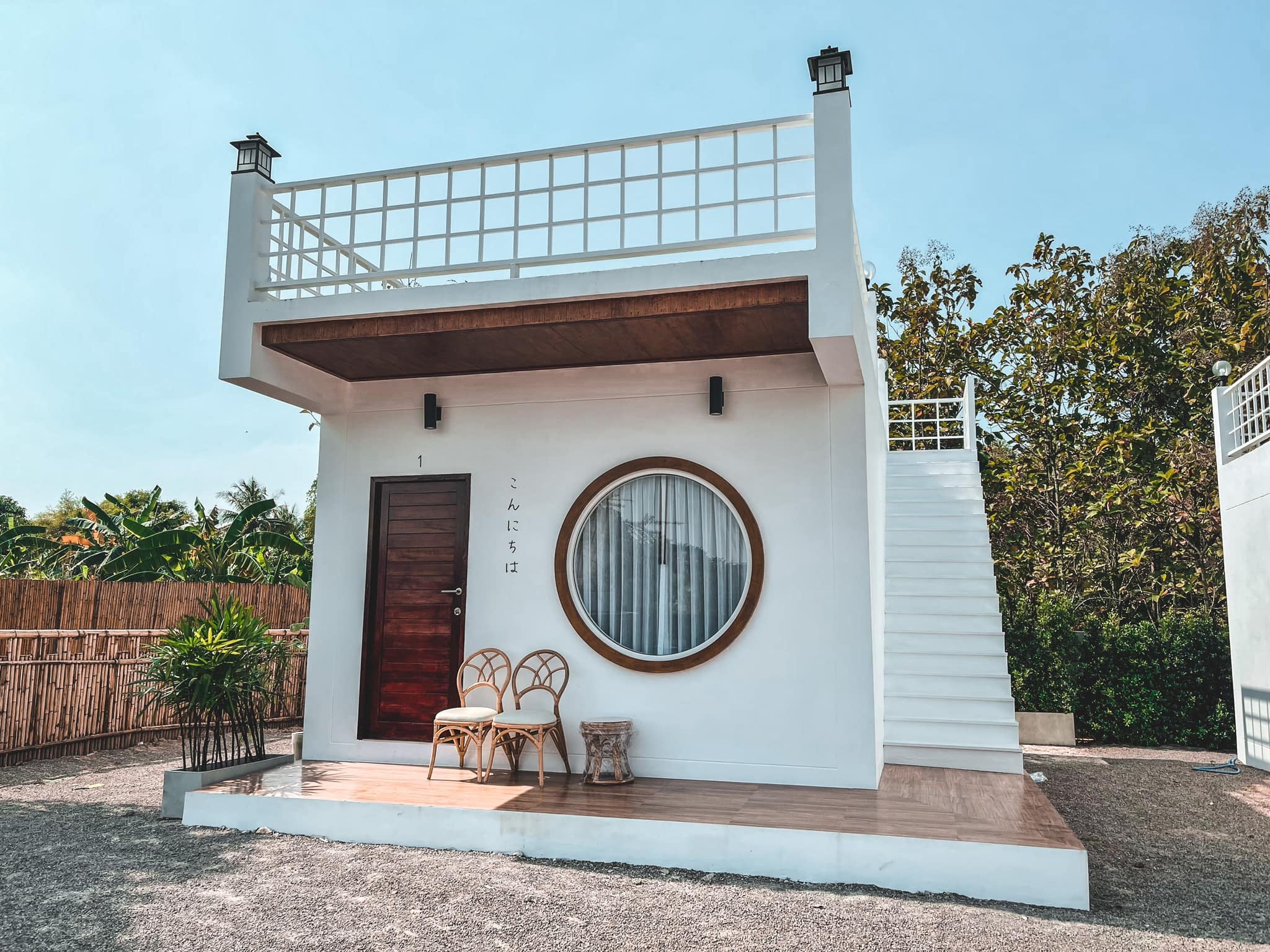 ซึ่งเราจะพาเพื่อน ๆ ไปชมในส่วนของที่พัก ซึ่งเป็นห้องพักขนาดเล็กที่ถูกออกแบบในสไตล์มินิมอล ตัวอาคารมีขนาดเล็ก ตกแต่งในโทนสีขาว แซมด้วยสีน้ำตาลที่ช่วยให้มีบรรยากาศที่อบอุ่น
