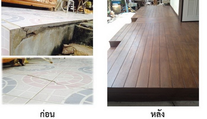 หลังน้ำท่วม บ้านจมน้ำอยู่เกือบ 2 เดือน ชานหน้าบ้าน ก็มีปัญหา คือ พื้นทรุด – กระเบื้องแตก เดินแล้วรู้สึกไม่มั่นคง จึงอยากทำ ชานหน้าบ้านใหม่ โดยผมต้องการเปลี่ยนเป็นไม้ และมีพื้นที่สำหรับ กิจกรรมมากขึ้น
