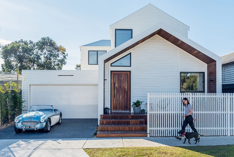บ้านหลังนี้มีดีไซน์ที่เรียบง่ายในแบบโมเดิร์น มีหลังคาหน้าจั่วเป็นเอกลักษณ์ ตกแต่งทั่วทั้งหลังในโทนสีขาว แซมด้วยสีน้ำตาลนิด ๆ จากงานไม้ ทำให้บ้านดูมีเสน่ห์สวยงามมากยิ่งขึ้น