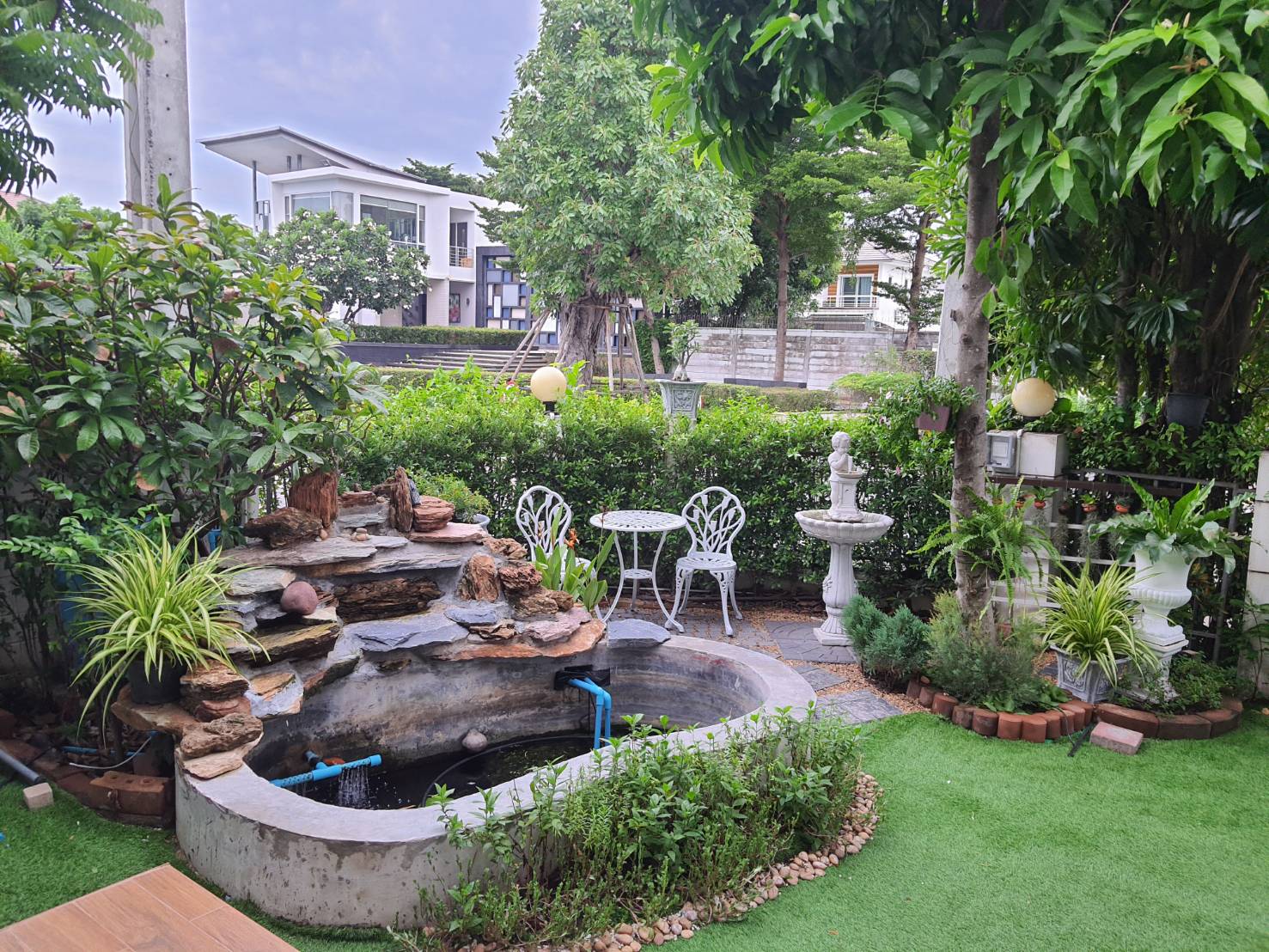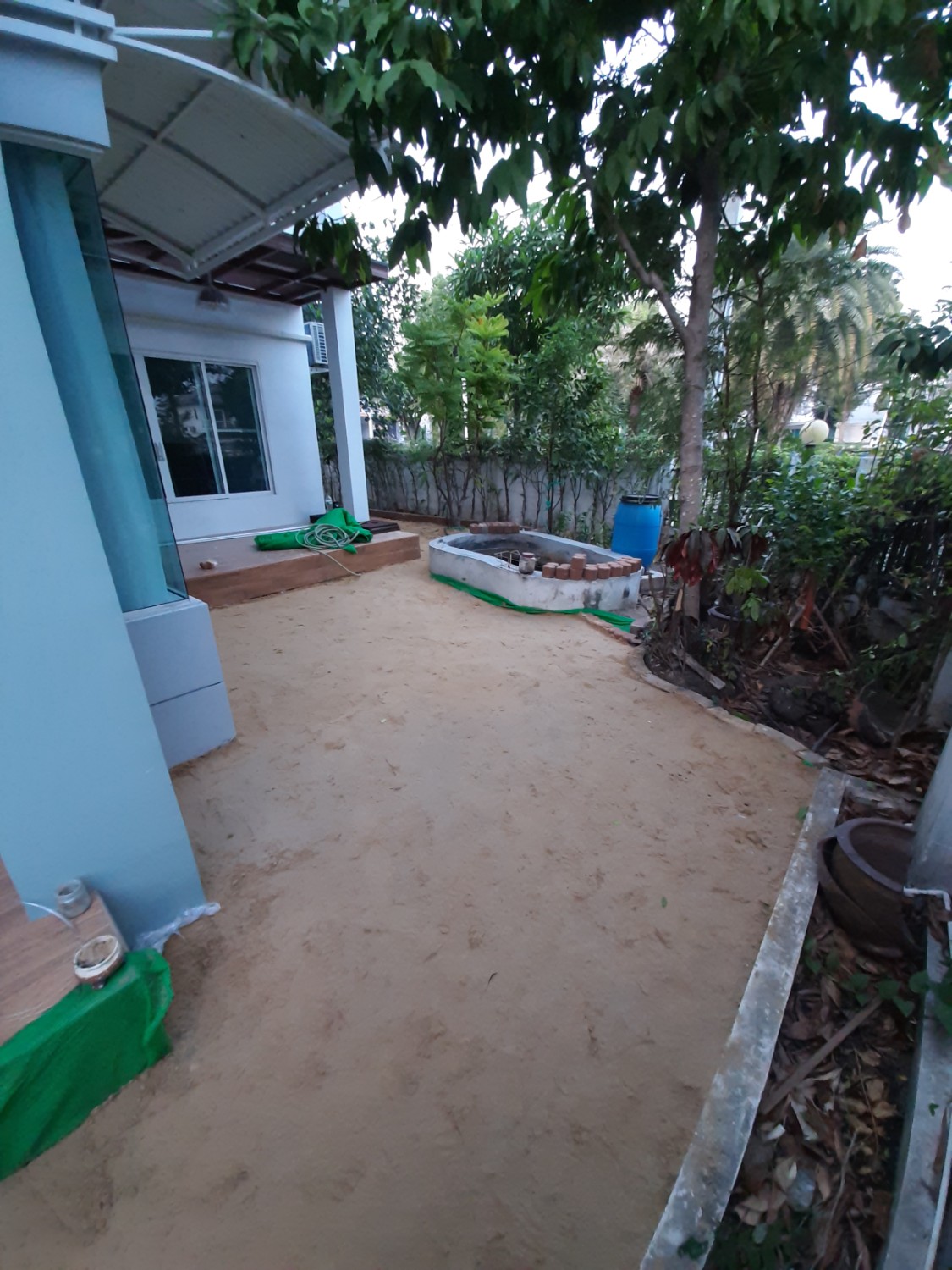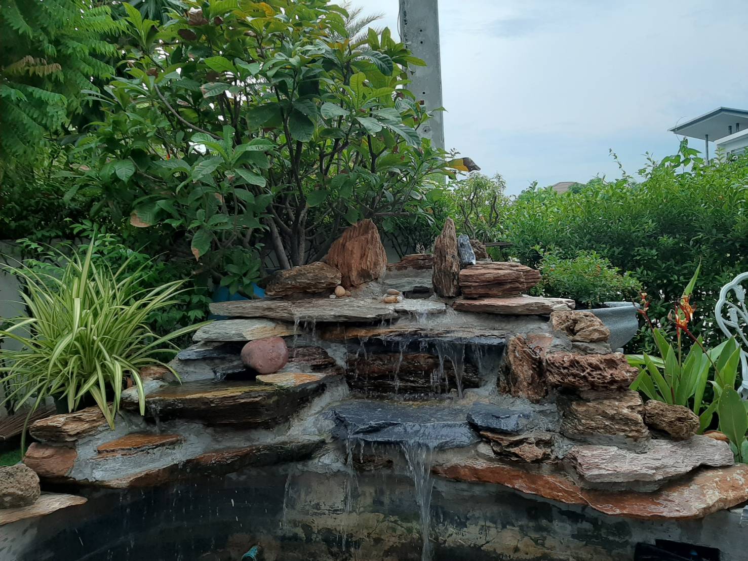 บ้านผมเป็นบ้านหลังมุม จึงทำให้มีพื้นที่ข้างบ้านเหลือประมาณ 30 ตร.ม. และมีบ่อปลาคราฟเก่าอยู่ เมื่อมีเวลาว่างอยู่บ้านจึงอยากปรับปรุงโดย ตั้งใจให้มุมพักผ่อนมี บ่อน้ำตก บ่อน้ำพุ มุมนั่งเล่น ท่ามกลางสวนที่ประดับด้วยต้นไม้และดอกไม้ จึงได้เริ่มปฏิบัติการจัดสวนด้วยตนเอง