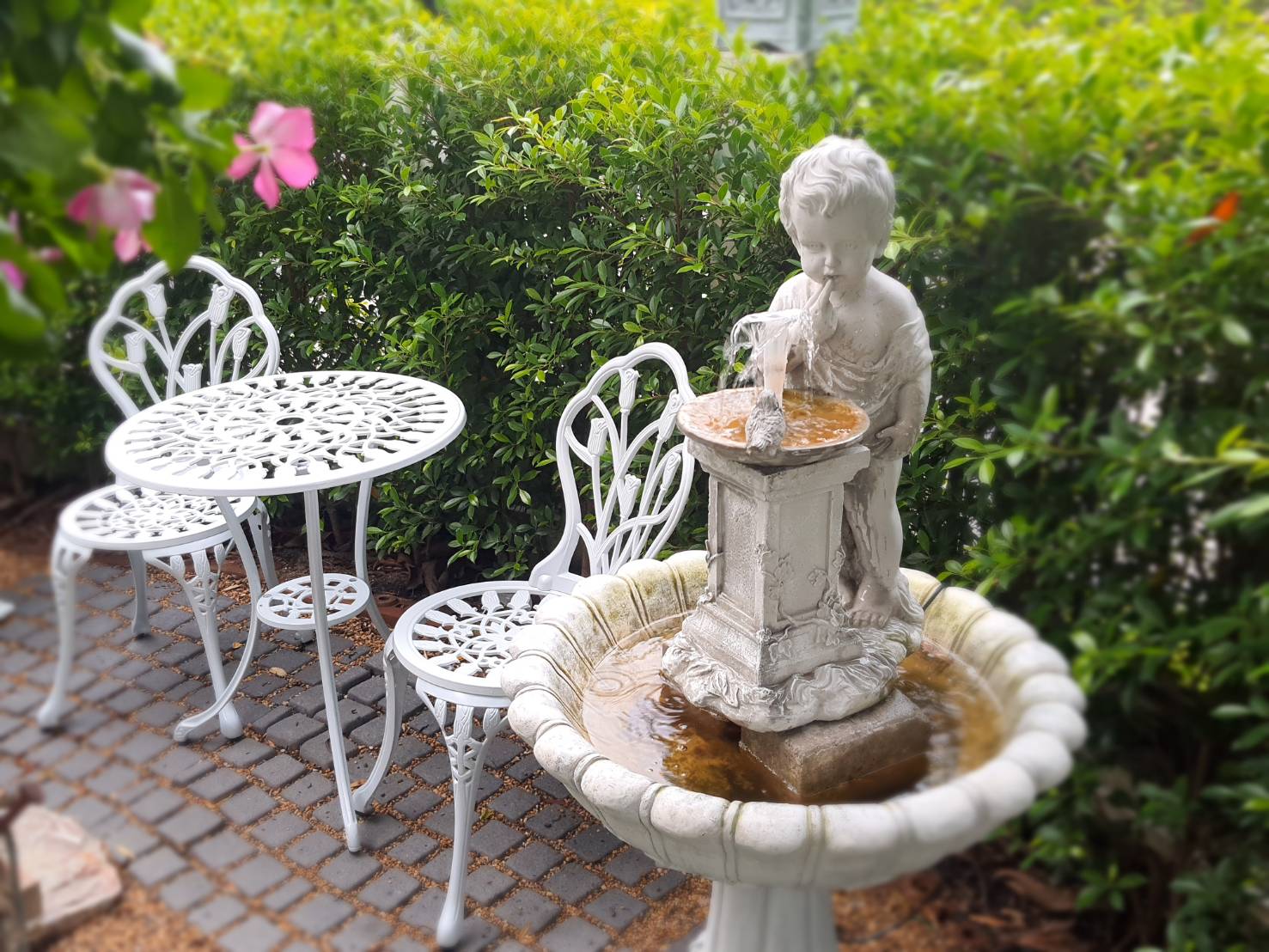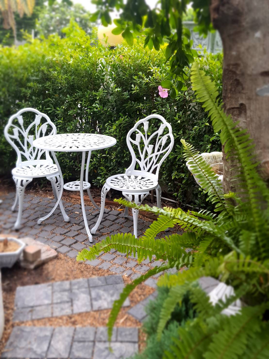แต่แค่นี้ก็พอให้การจิบชาเขียวได้อย่างสุนทรีย์แล้ว แสงแดดส่วนมุมสวนด้านนี้จะโดนแดดแค่ช่วงเช้า ทำให้สามารถนั่งเล่นได้ตั้งแต่ 6-8 โมงเช้า และ 14-19.00 น. แบบสบาย ๆ ชิลล์ ๆ
