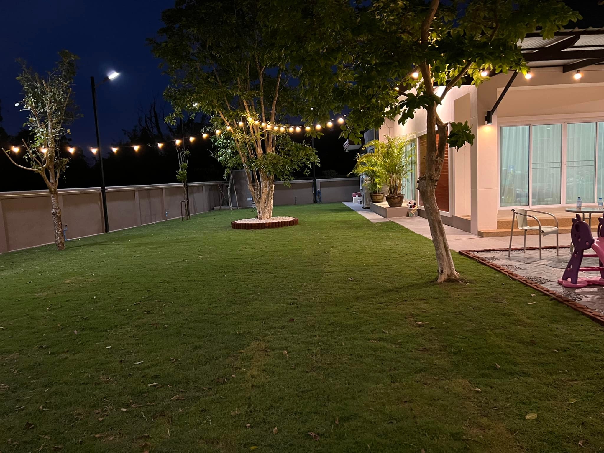 ตกแต่งด้วยไฟสาย ทำให้บรรยากาศตอนหัวค่ำสวยมาก
