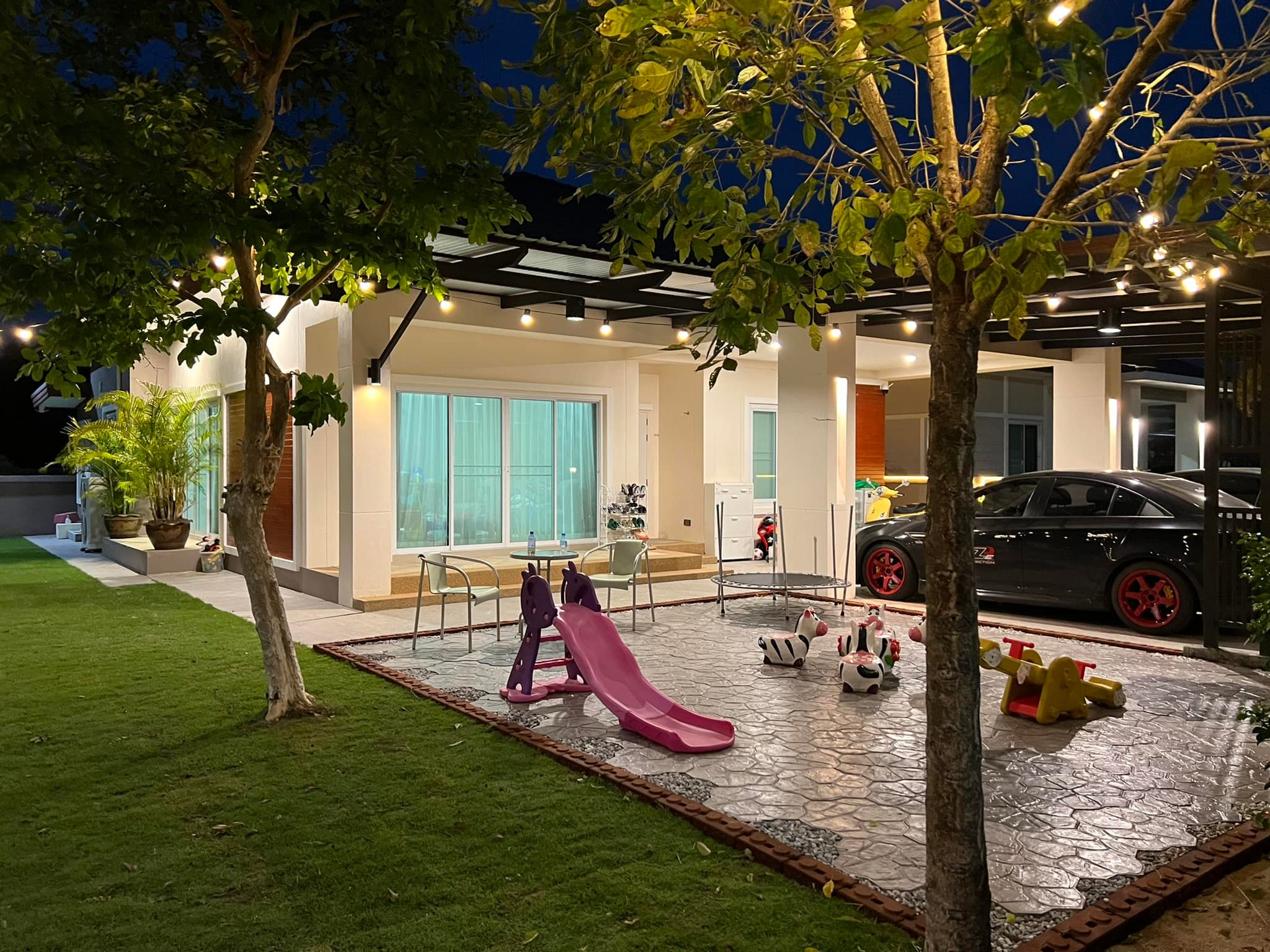 การจัดสวนจะแบ่งเป็น 3 โซน โดยโซนแรกจะเป็นลานกิจกรรมของลูก ซึ่งจะปูพื้นด้วยแบบปูนขัดมัน เพื่อให้ลูกทำกิจกรรม หรือเล่นได้อย่างปลอดภัย