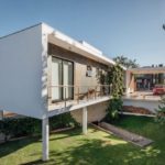 ยกพื้นสูงพองาม จากโครงสร้างเหล็ก และคอนกรีต ที่รองรับตัวบ้านเอาไว้ ตกแต่งด้วยไม้ในรอบๆ พื้นเฉลียง