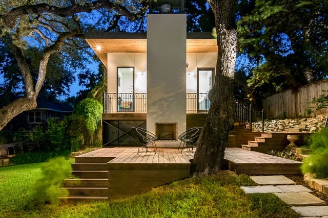 บ้านโครงสร้างคอนกรีต และมีงานโครงสร้างเหล็กเพิ่มเติม ตกแต่งด้วยไม้ และอิฐเล็กน้อย รูปทรงแบบกล่องของตัวบ้าน สวยงามแบบสมัยใหม่