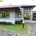 จากในภาพจะสังเกตได้ว่า ตัวบ้านติดตั้งหน้าต่างไว้โดยรอบ เพื่อที่จะเปิดรับแสงแดดและเปิดให้อากาศถ่ายเทเข้ามาภายในบ้านได้อย่างเต็มที่ ตลอดจนเปิดรับทิวทัศน์ธรรมชาติจากสวนสีเขียวที่โอบล้อมอยู่รอบบ้าน