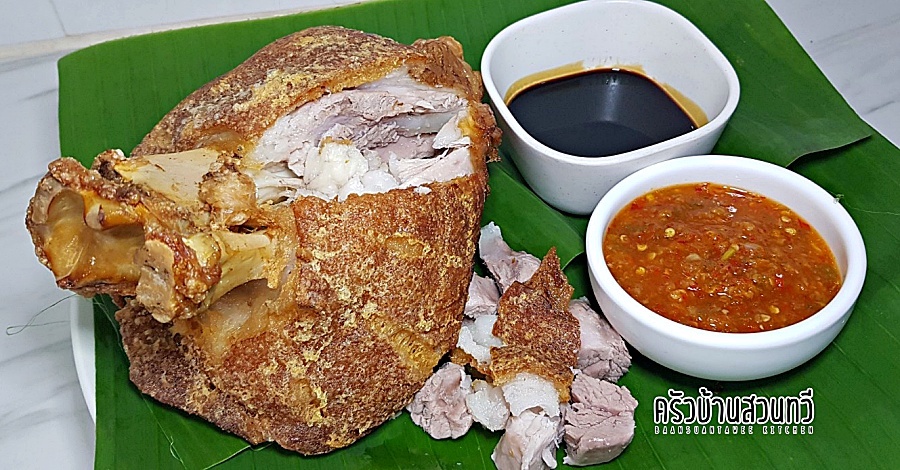 3. หลังจากนั้นนำขาหมูไปทอดด้วยน้ำมันร้อน ๆ จนกรอบ ก็พร้อมรับประทานแล้วค่ะ