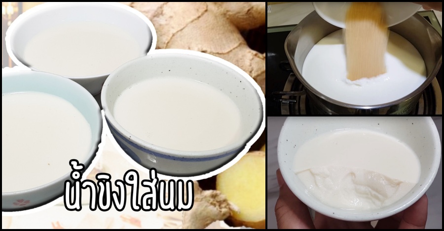 *ใส่น้ำขิง 3 ช้อนโต๊ะ ต่อนม 100 มิลลิลิตร แล้วตั้งทิ้งไว้ 8-10 นาที น้ำขิงจะเริ่มเซตตัวเป็นก้อน