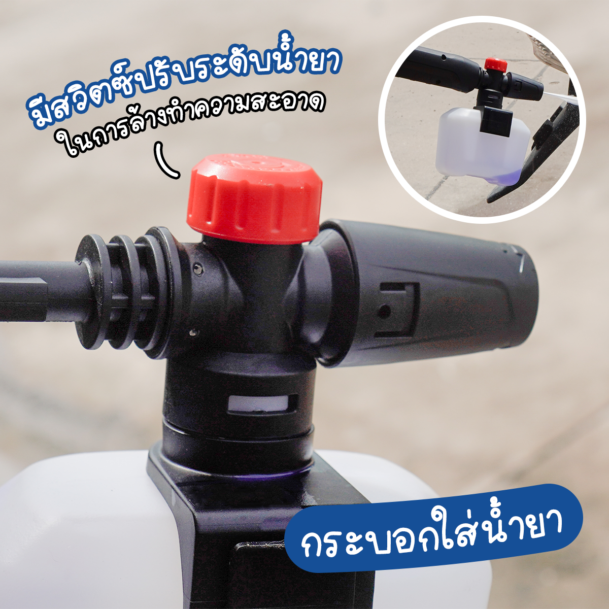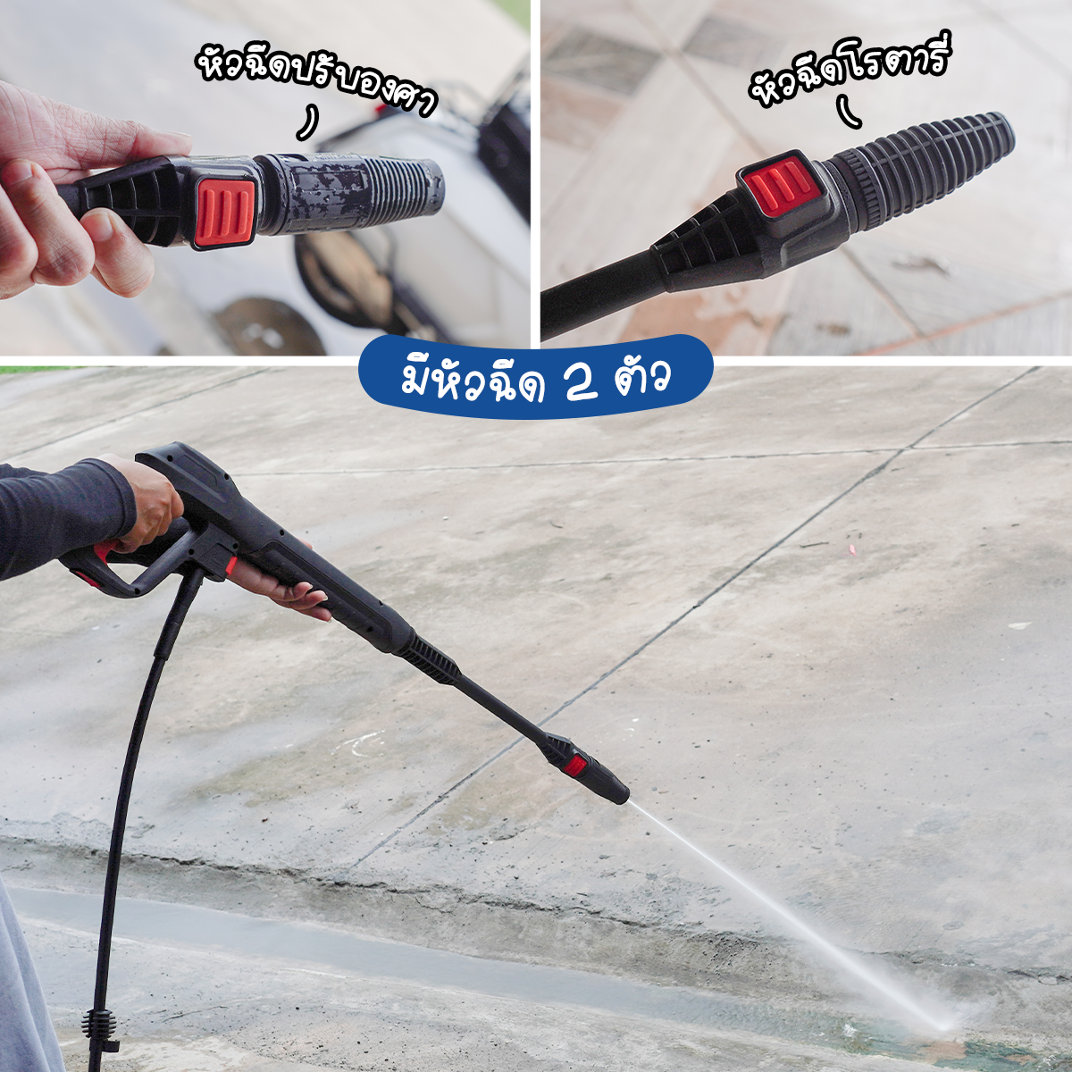 อีกอย่าง มันมีหัวฉีดสำหรับฉีดโฟม และหัวฉีดโรตารี่ที่ครอบคลุมพื้นที่กว้างได้ดีอีกด้วยนะ เอาไว้สำหรับล้างทำความสะอาดพื้น หรือล้างรถก็ได้