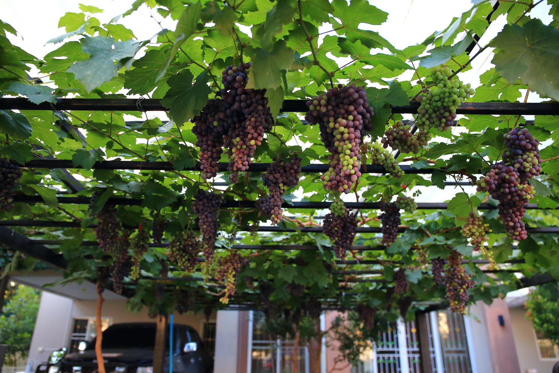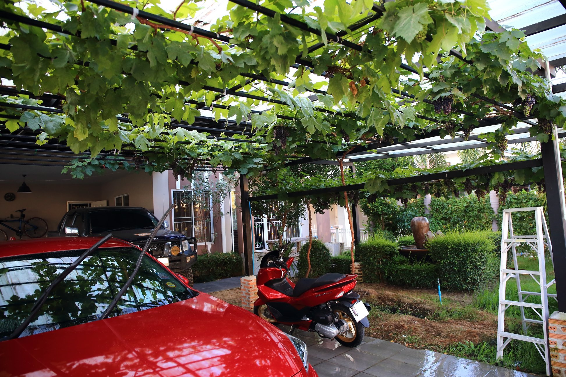 แต่แล้วทางคุณ Prite Taitaemthong ก็ได้โชว์ไอเดียดี โดยการปลูกองุ่นเอาไว้ที่บริเวณโรงจอดรถที่หน้าบ้านของตัวเอง ซึ่งให้ทั้งความร่มรื่นสวยงาม แถมยังมีผลองุ่นไว้รับประทานกันอีกด้วย