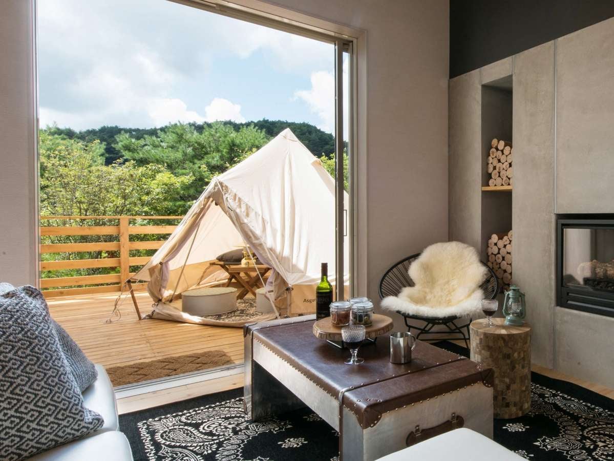หรือถ้าใครชอบบรรยากาศที่เป็นธรรมชาติ ก็สามารถออกมานอนในเต็นท์ที่ถูกกางเอาไว้ที่เฉลียงไม้นกบ้านก็ได้ ซึ่งจะได้ใกล้ชิดกับวิวสวย ๆ ด้านนอกนั่นเอง