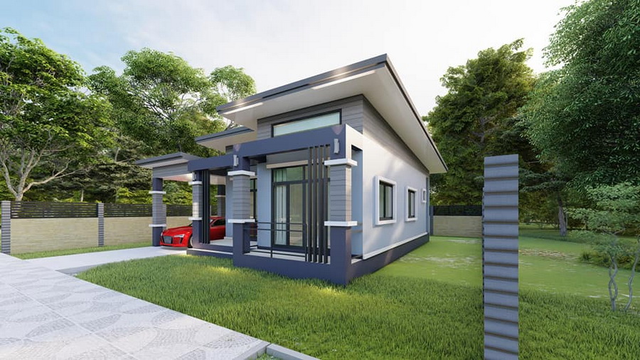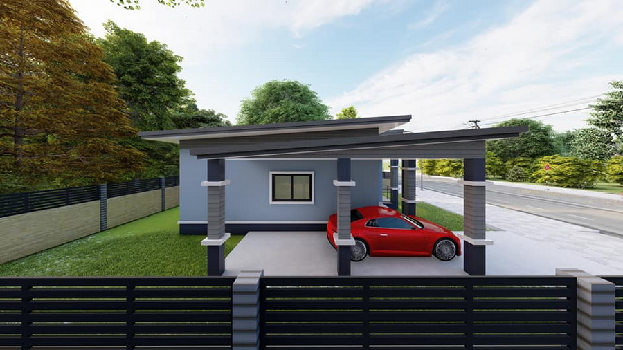 แบบบ้านสไตล์โมเดิร์น ตกแต่งในโทนสีเทาสบายตา มาพร้อมกับฟังก์ชันการใช้งานที่ครบถ้วน