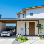 พื้นที่รอบบ้านรายล้อมไปด้วยสนามหญ้าและสวนป่า จากมุมนี้เป็นภาพของบ้านครึ่งไม้ครึ่งปูนแนวชนบท ที่กลมกลืนอย่างลงตัวไปกับบริบทโดยรอบ