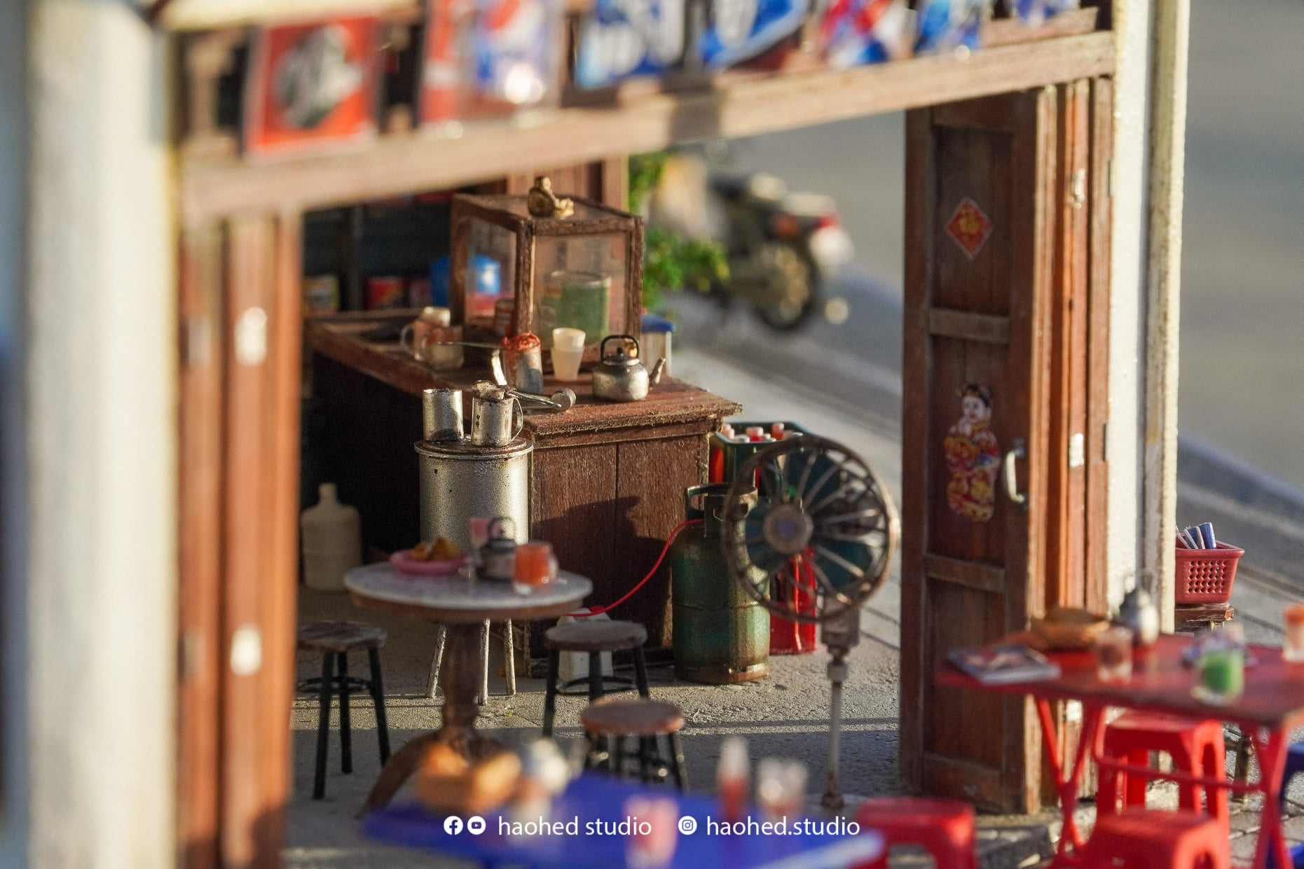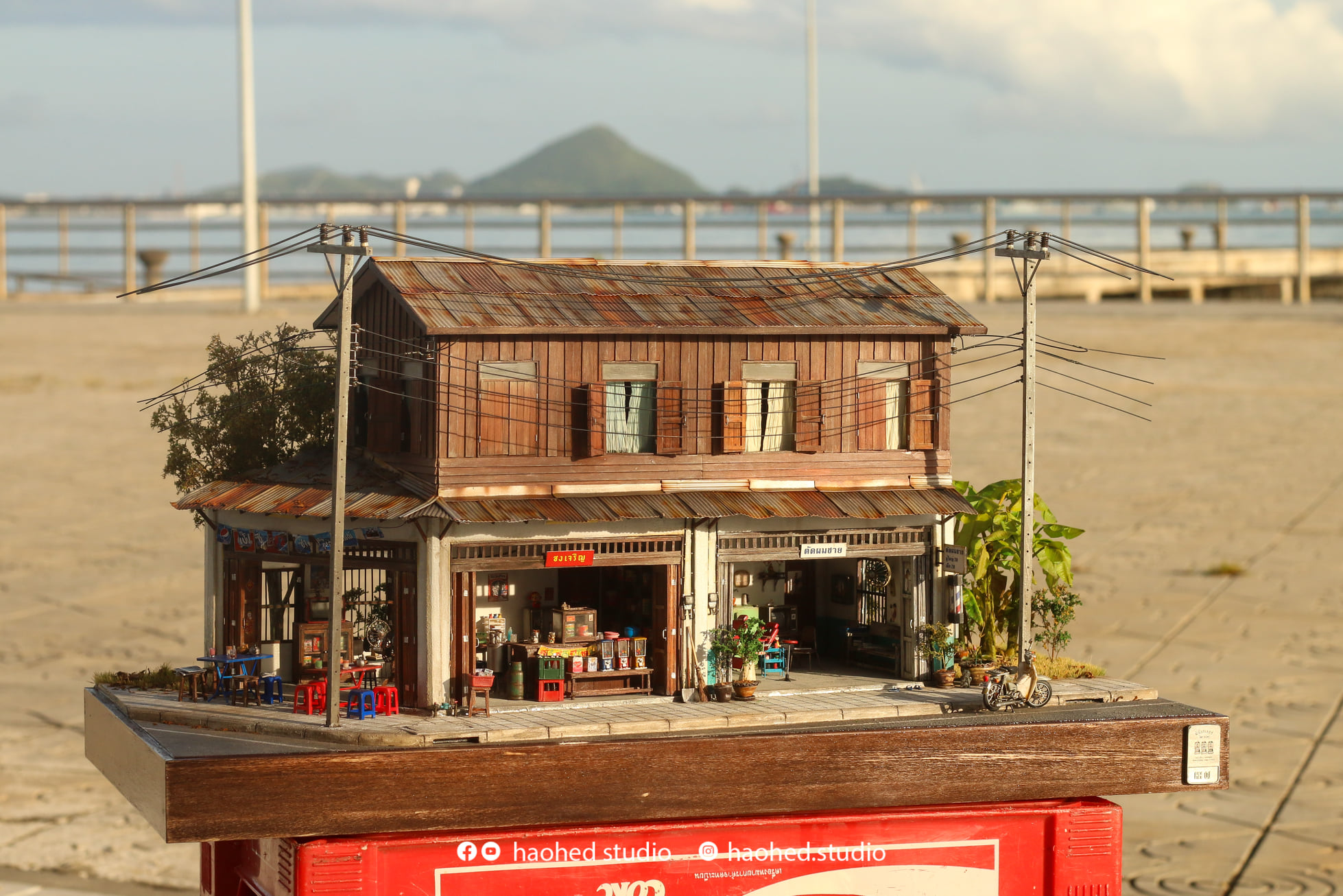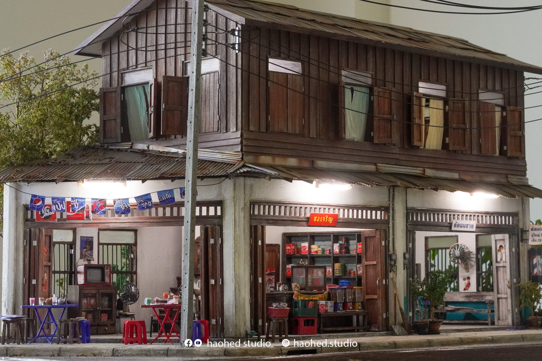 โดยในโมเดลชุดนี้เป็นภาพบ้านหนึ่งหลังลักษณะ 2 ชั้น โดยชั้นแรกจะเป็นทั้งร้านชากาแฟขายของชำ ห้องติดๆ กันก็เป็นร้านตัดผมที่อยู่ข้างๆ มีการเก็บรายละเอียดแทบทุกส่วนสะท้อนกลิ่นอายวิถีชีวิตของคนในสมัยได้เป็นอย่างดีเลยล่ะ