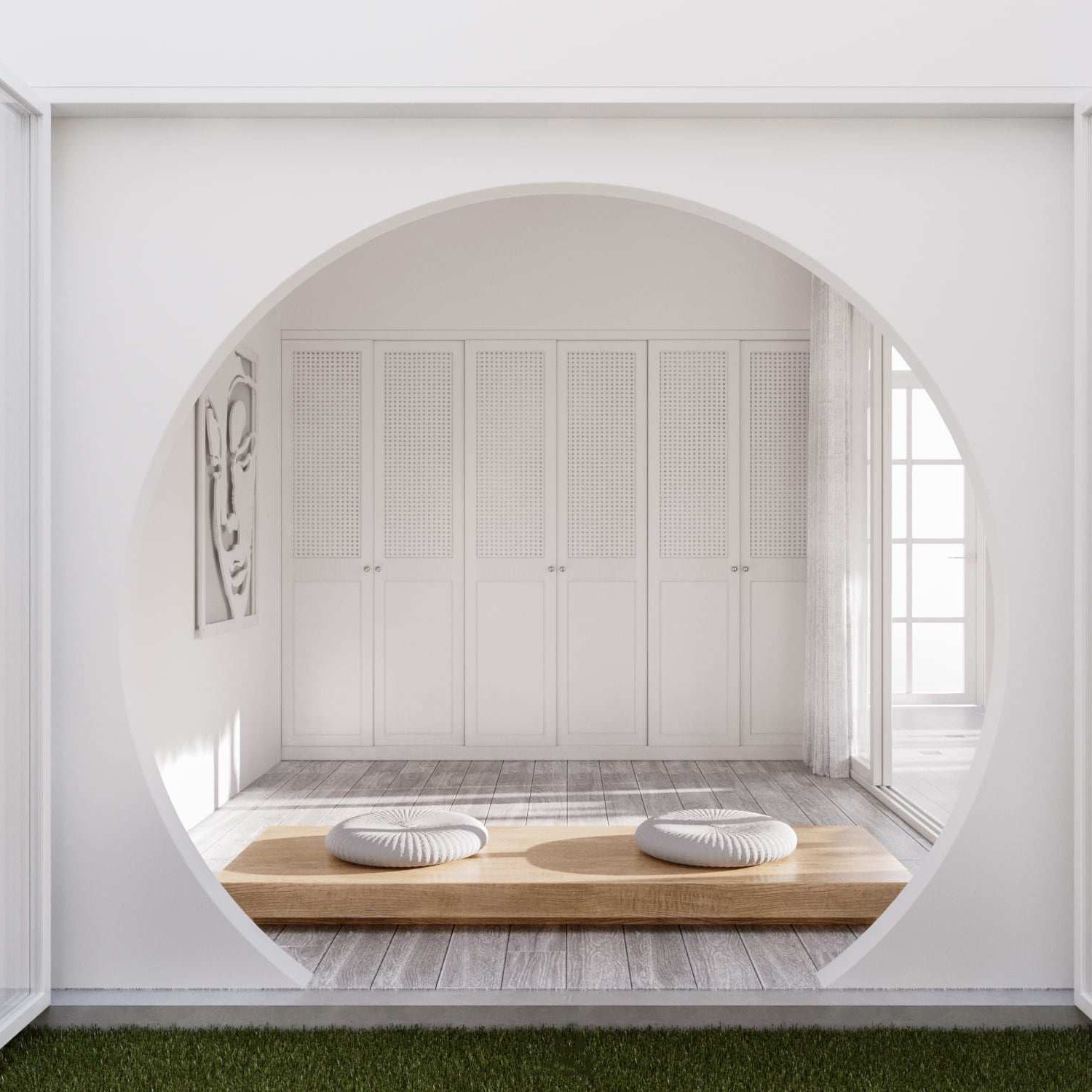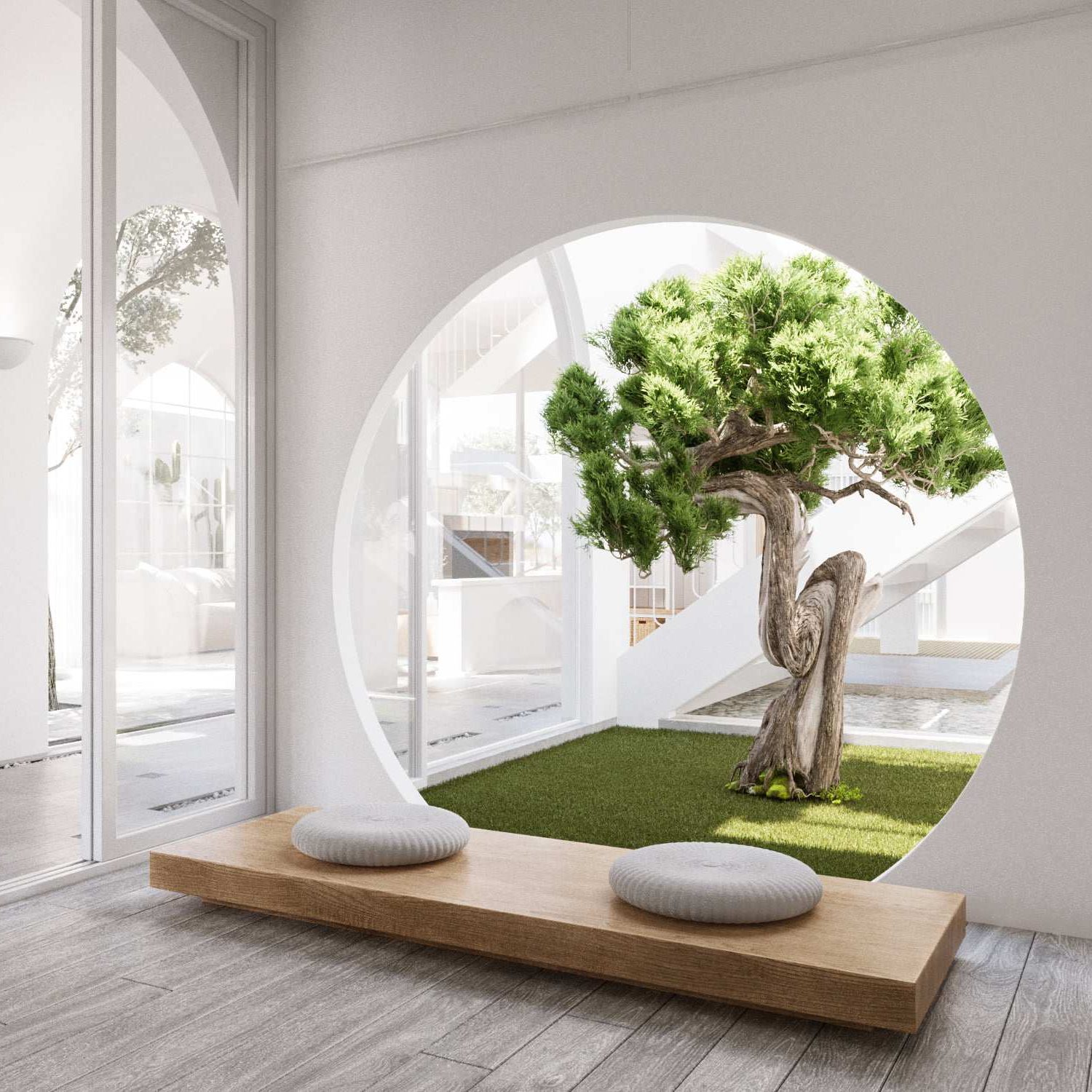 บริเวณนี้เป็นมุมนั่งเล่นที่เป็นสวนหย่อมขนาดเล็ก พร้อมกับหน้าต่างทรงกลม ซึ่งได้รับอิทธิพลการออกแบบมาจากสวนเซนในสไตล์ญี่ปุ่น