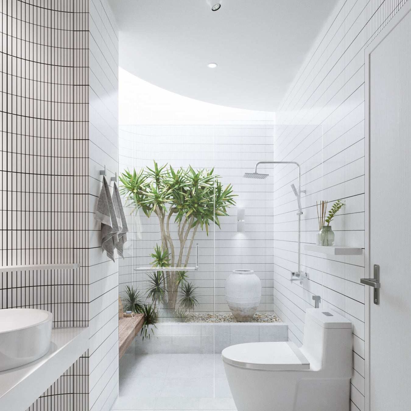 ในขณะที่ห้องน้ำนั้นจะเพิ่มความสดชื่นผ่านการจัดสวนไว้ภายใน ในขณะที่มุมอื่น ๆ ยังคงกลิ่นอายความมินิมอลเอาไว้อย่างชัดเจน