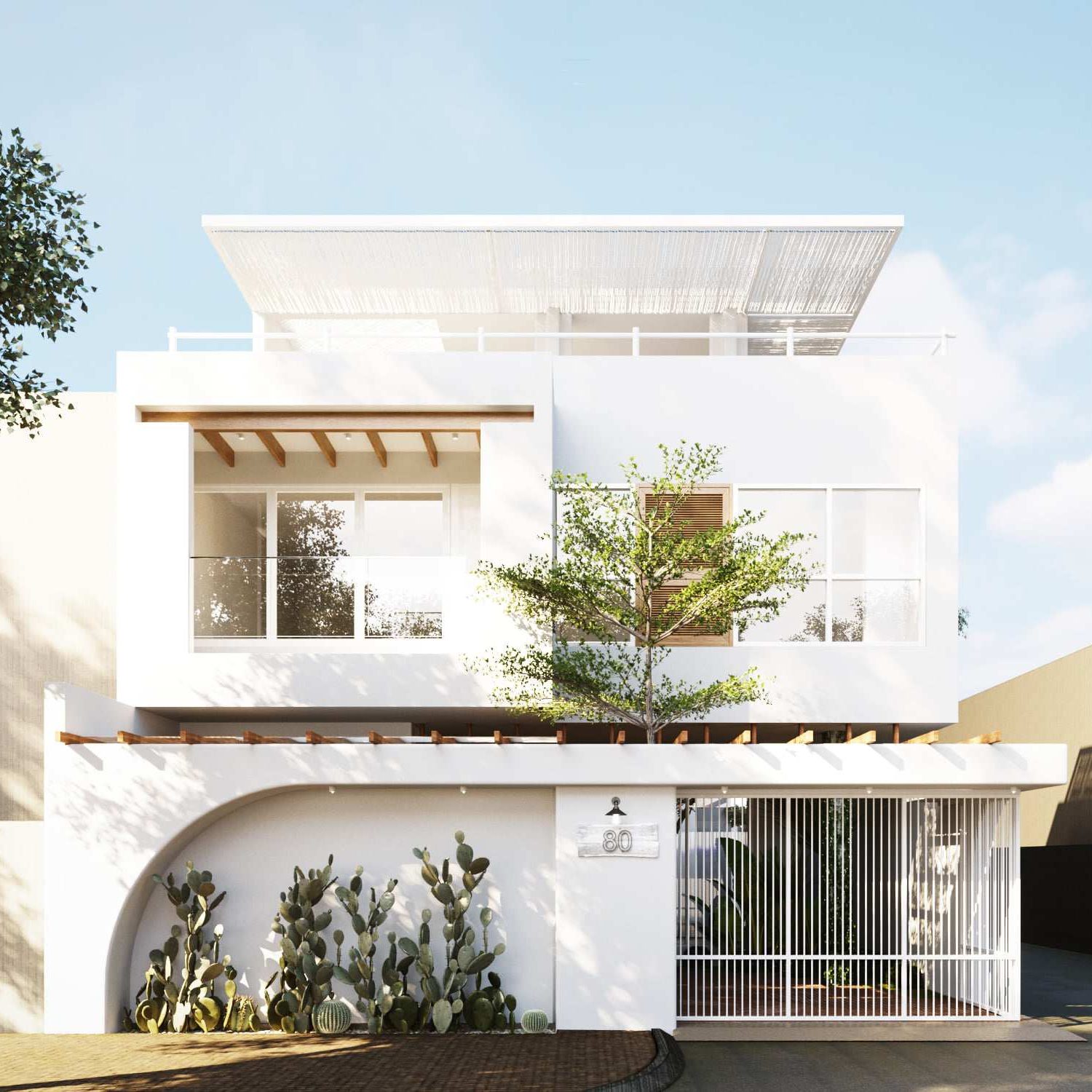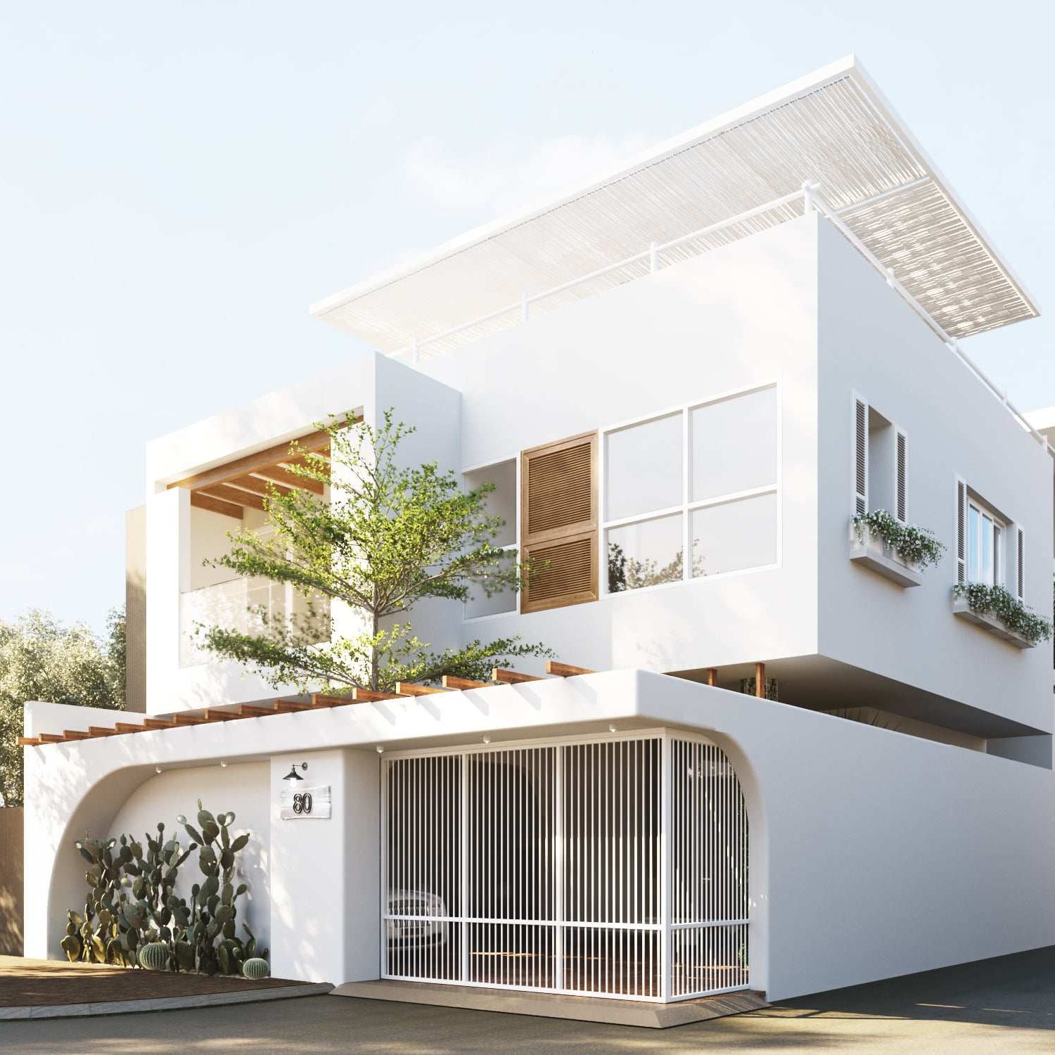 สำหรับบ้านหลังนี้ เป็นบ้านขนาดสองชั้น ลักษณะของบ้านจะมีดีไซน์ในรูปทรงเรขาคณิตแบบทรงกล่อง ซึ่งเป็นพื้นฐานการออกแบบบ้านในสไตล์โมเดิร์น โดยในรายละเอียดการตกแต่งอื่น ๆ จะให้ความผสมผสานความเป็นบ้านเอเชียและบ้านตะวันตกเข้าไว้ด้วยกันบนพื้นฐานการตกแต่งแบบมินิมอล
