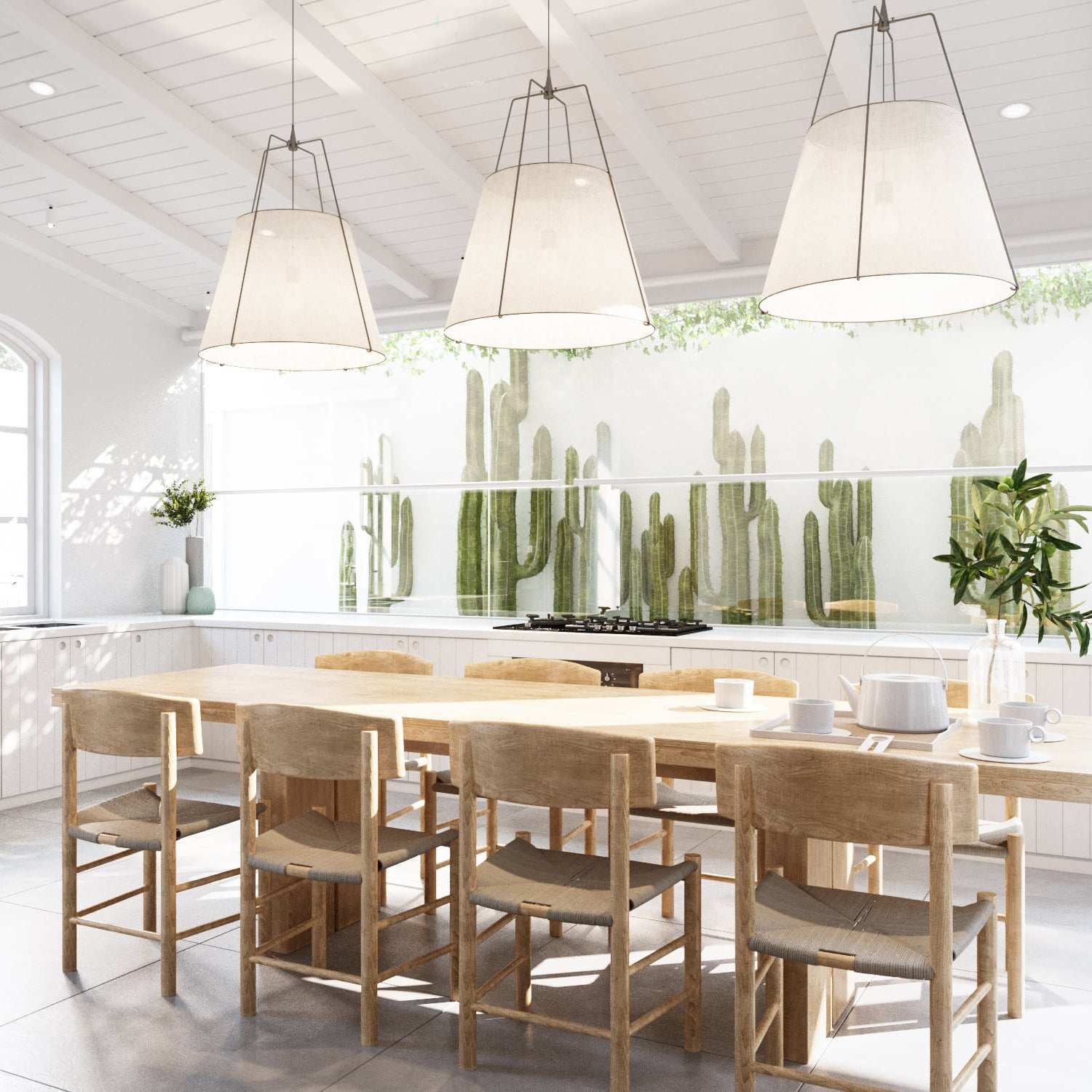 สำหรับห้องนี้จะเป็นห้องรับประทานอาหารที่กลางห้องตกแต่งด้วยโต๊ะไม้ยาวตัวใหญ่ ผนังด้านข้างเป็นแบบกระจกใสที่ด้านนอกยังคงจัดสวนกระบองเพชรเอาไว้