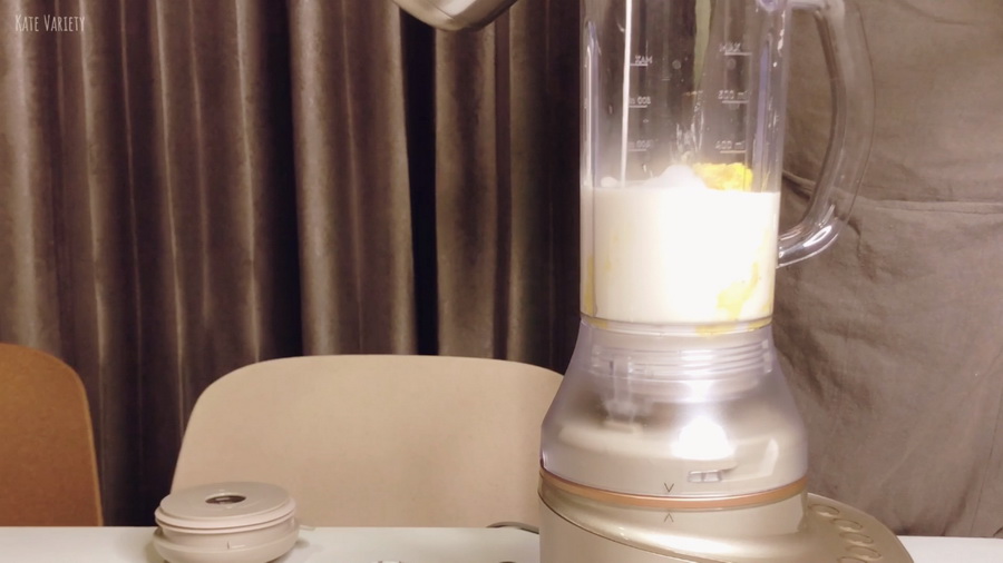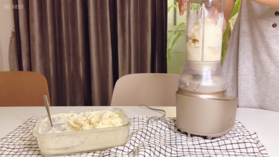 6. หลังจากแช่ไอติม 1 คืน นำมาออกมาปั่นให้ละเอียดอีกรอบ จะทำให้เนื้อไอติมเนียนนุ่มมากขึ้น