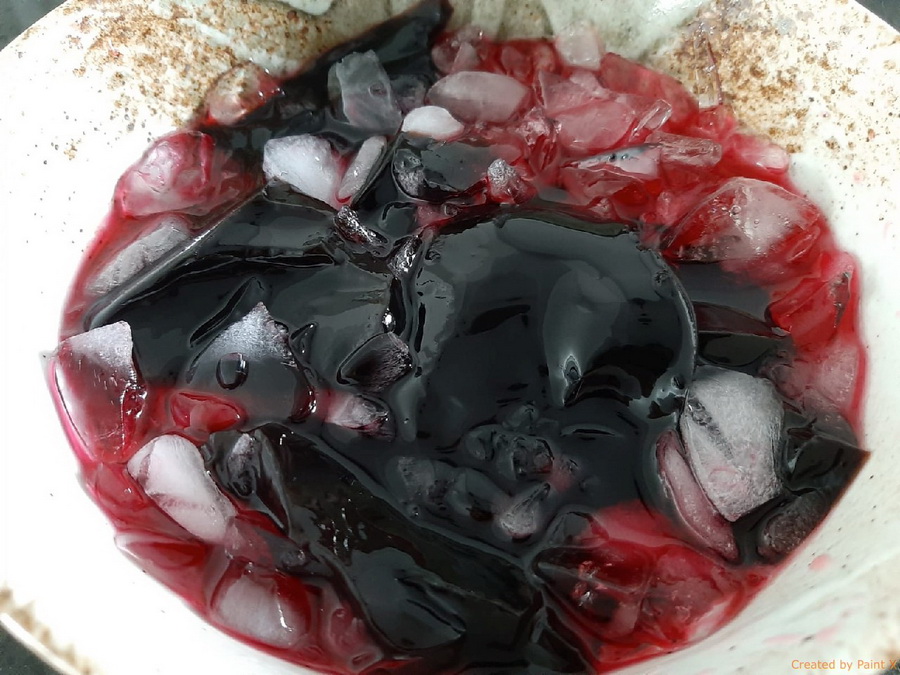 2. เทน้ำสะอาดส่วนที่ 1 ลงไป คนให้เข้ากัน เนื้อเค้าจะออกเป็นลิ่ม ๆ ค่ะ
