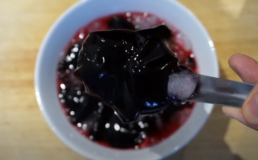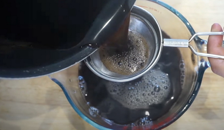 5. พอเดือดแล้ว ปิดไฟ เทผ่านกระชอน ใส่ชามแก้วทนความร้อน ช้อนฟองด้านบนออก เพื่อความเนียน