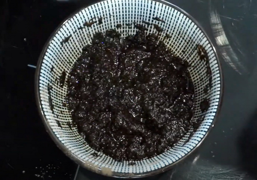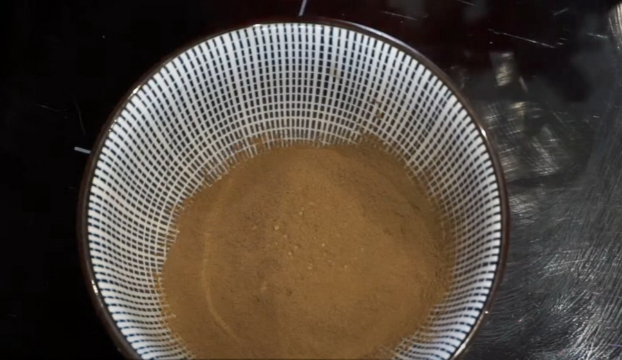 1. เทผงเฉาก๊วยใส่ชาม ผงเฉาก๊วยหน้าตาเป็นแบบนี้ค่ะ