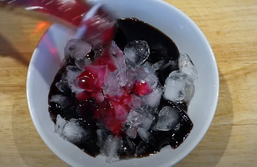 ทานได้เลยค่า ใช้ช้อนตักหรือปาดขึ้นมา ทุบน้ำแข็งใส่ โรยน้ำหวาน