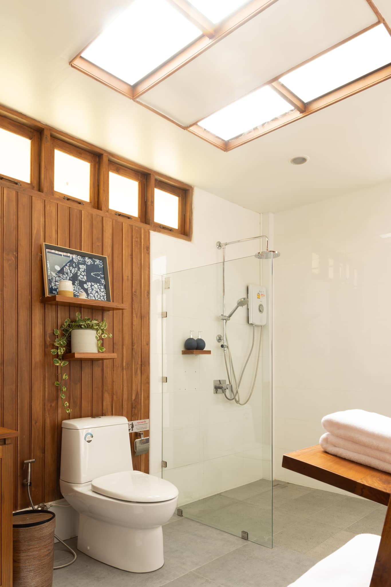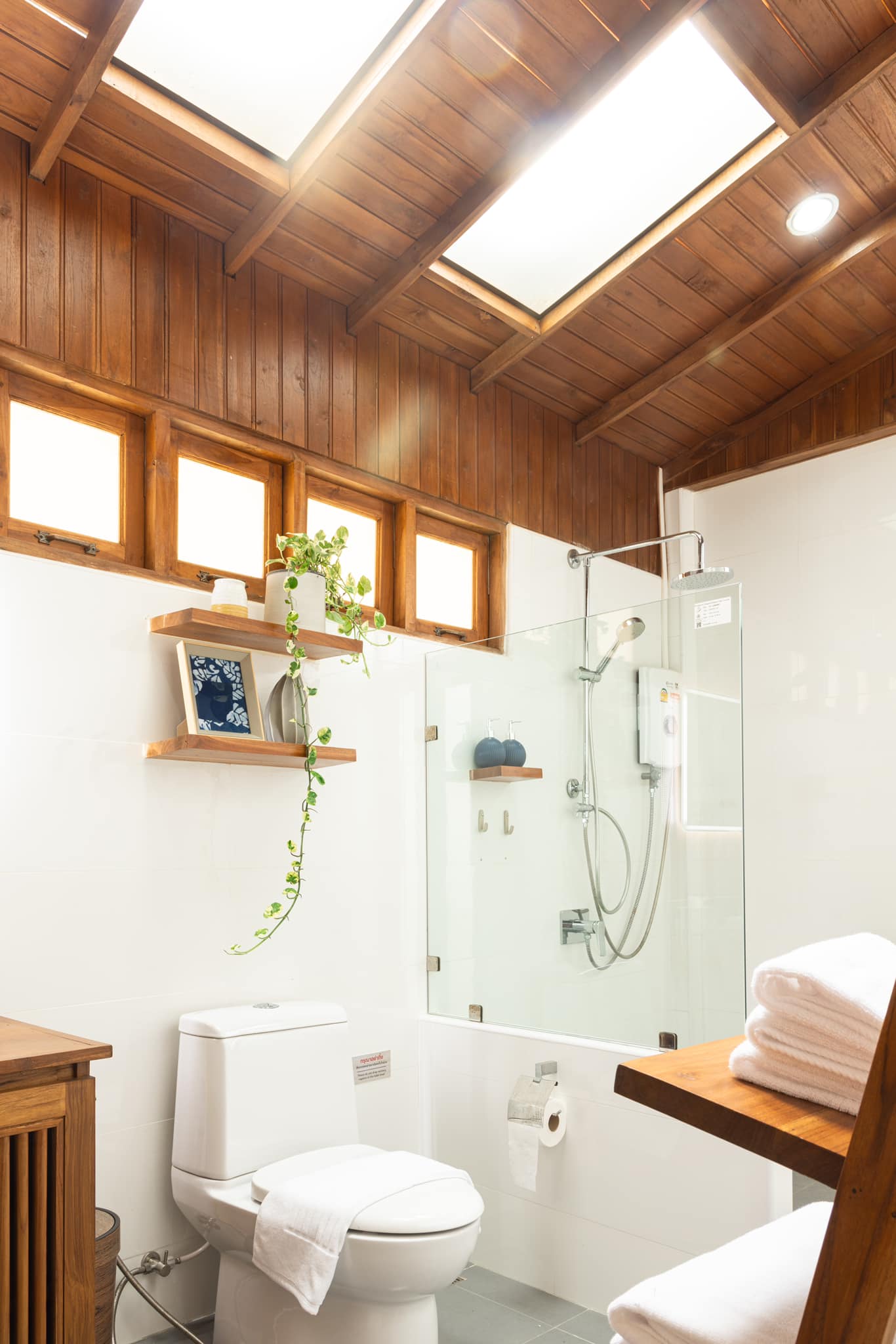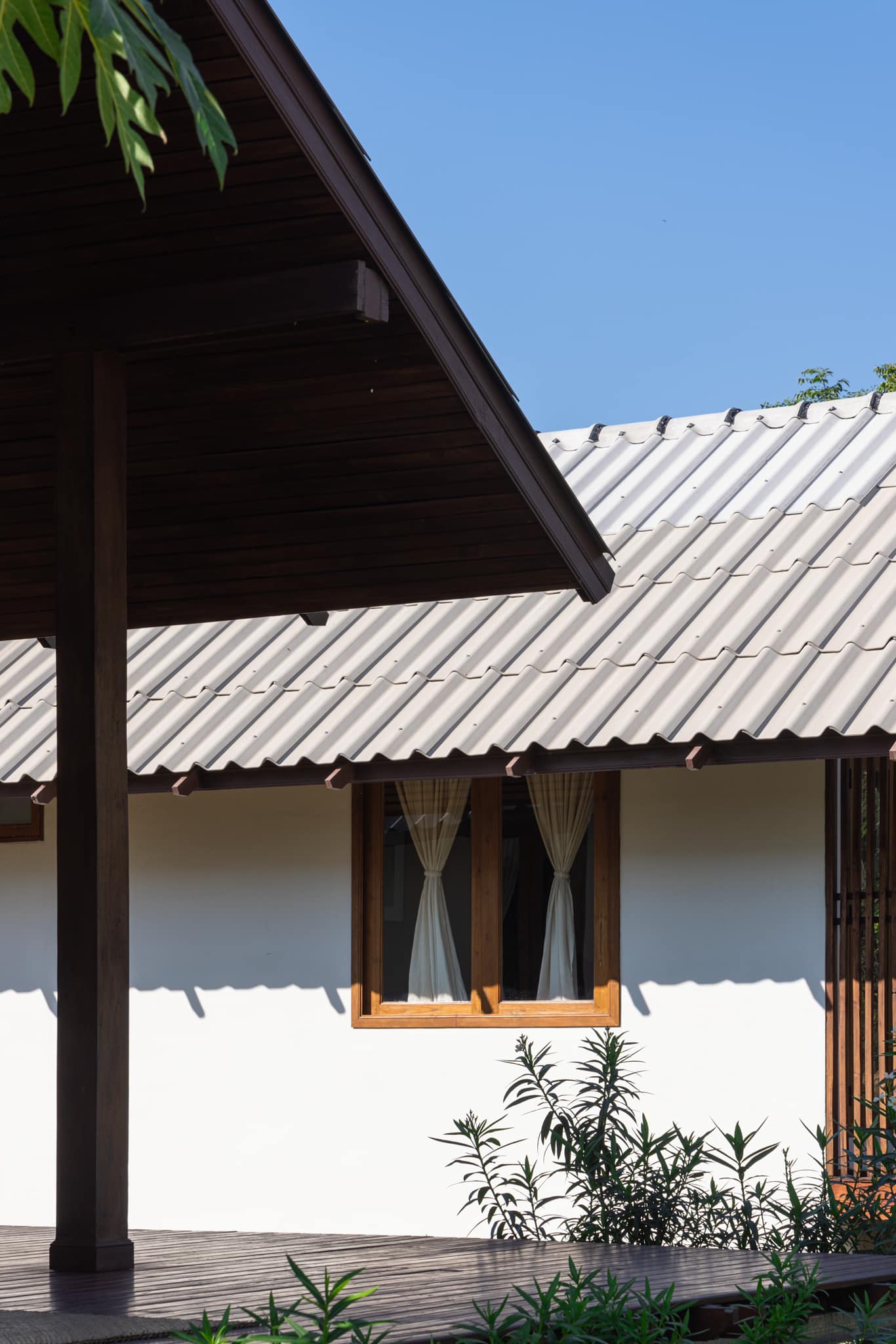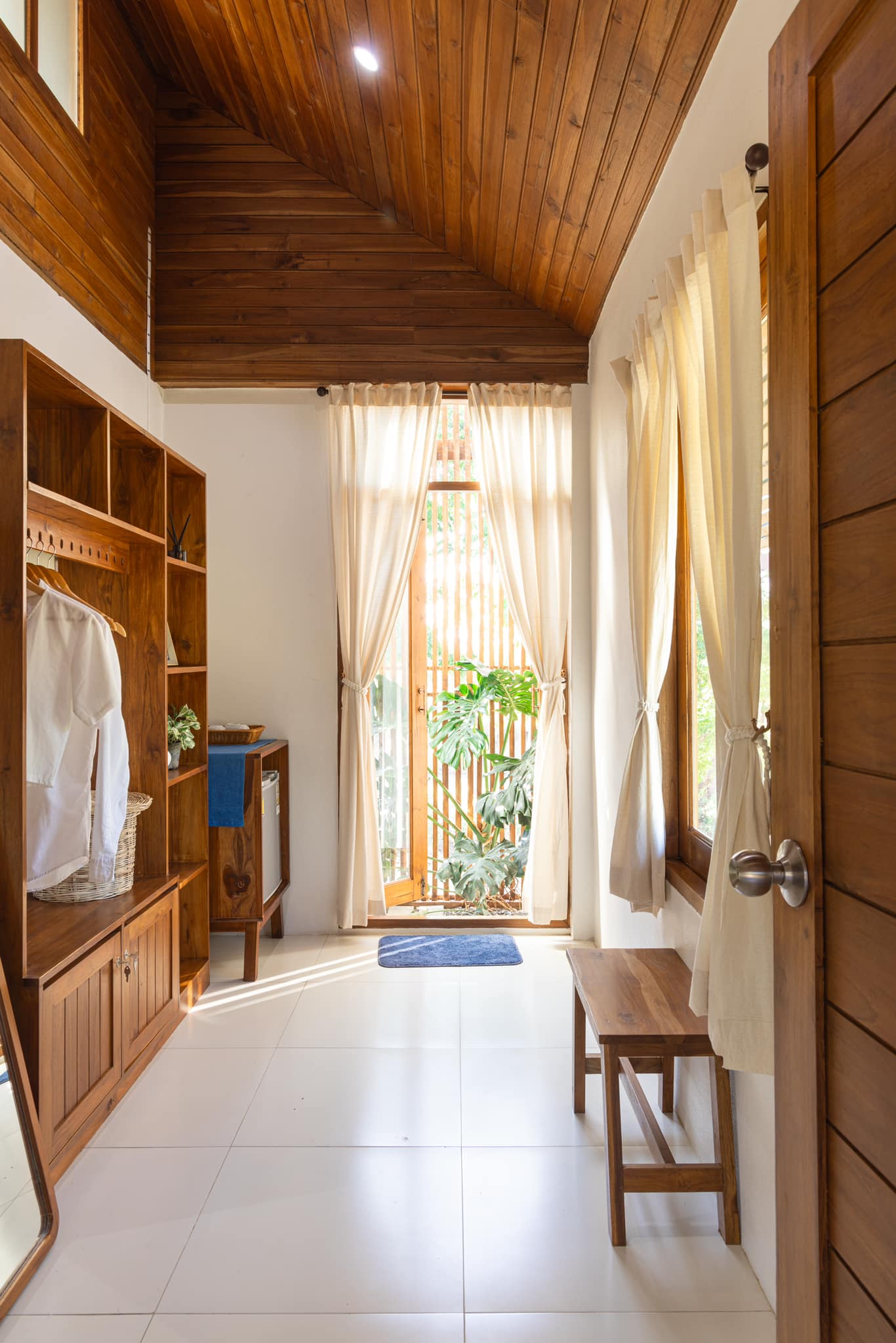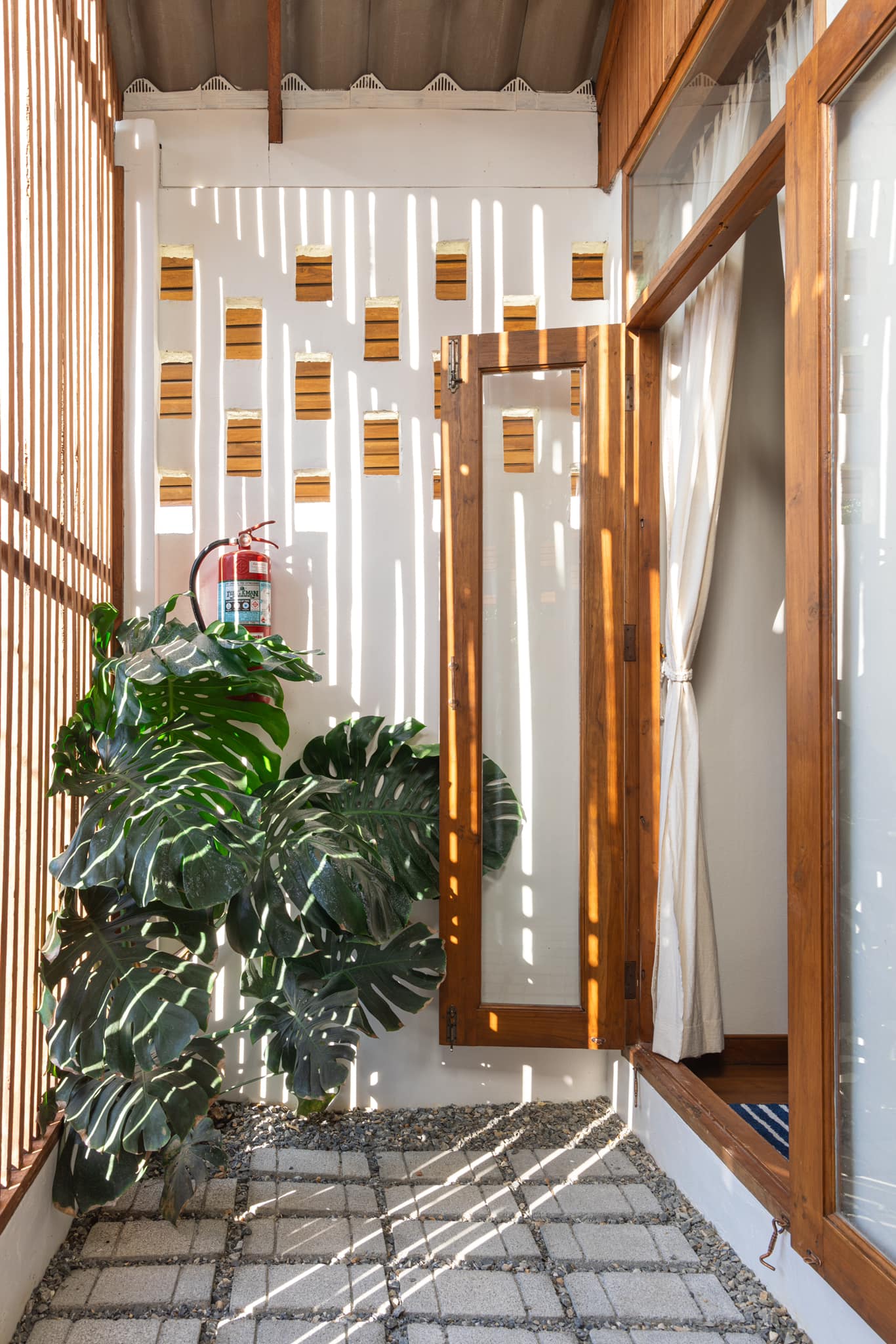บ้านมีลักษณะเป็นบ้านกึ่งไม้กึ่งปูน ยกพื้นเล็กน้อย หลังคาทรงจั่ว ให้ฟีลบ้านต่างจังหวัด ภายในมีช่องลมช่องแสงรอบบ้าน เพื่อให้ผู้พักอาศัยได้สัมผัสกับธรรมชาติตลอดวันไปเลย