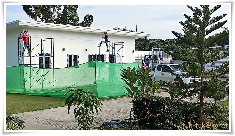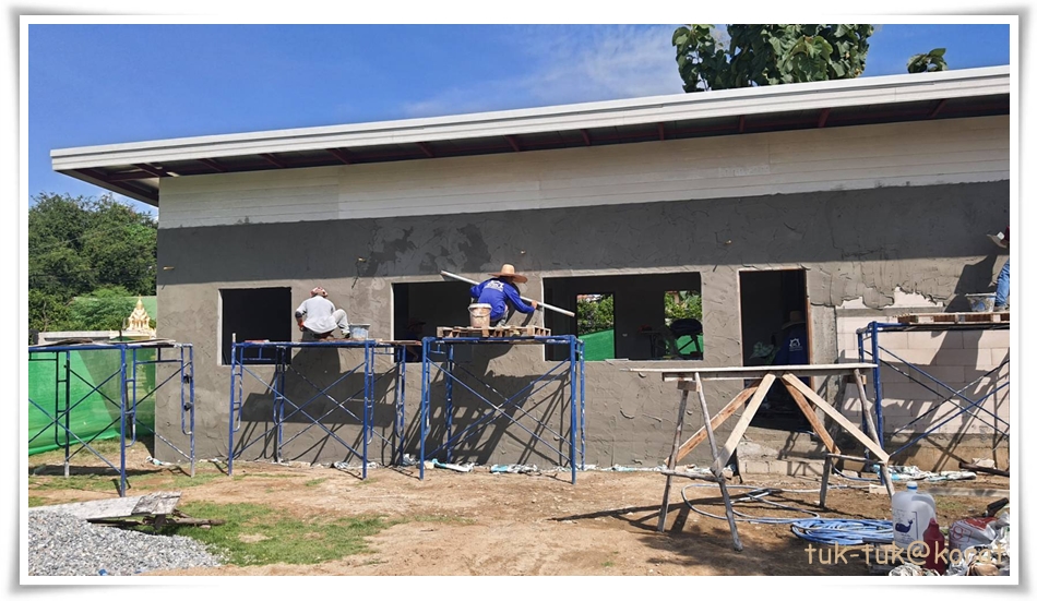 – รูปขณะทำการฉาบเห็นมีช่างทำงานหลายคน บอกว่างานน่าจะเสร็จเร็ว