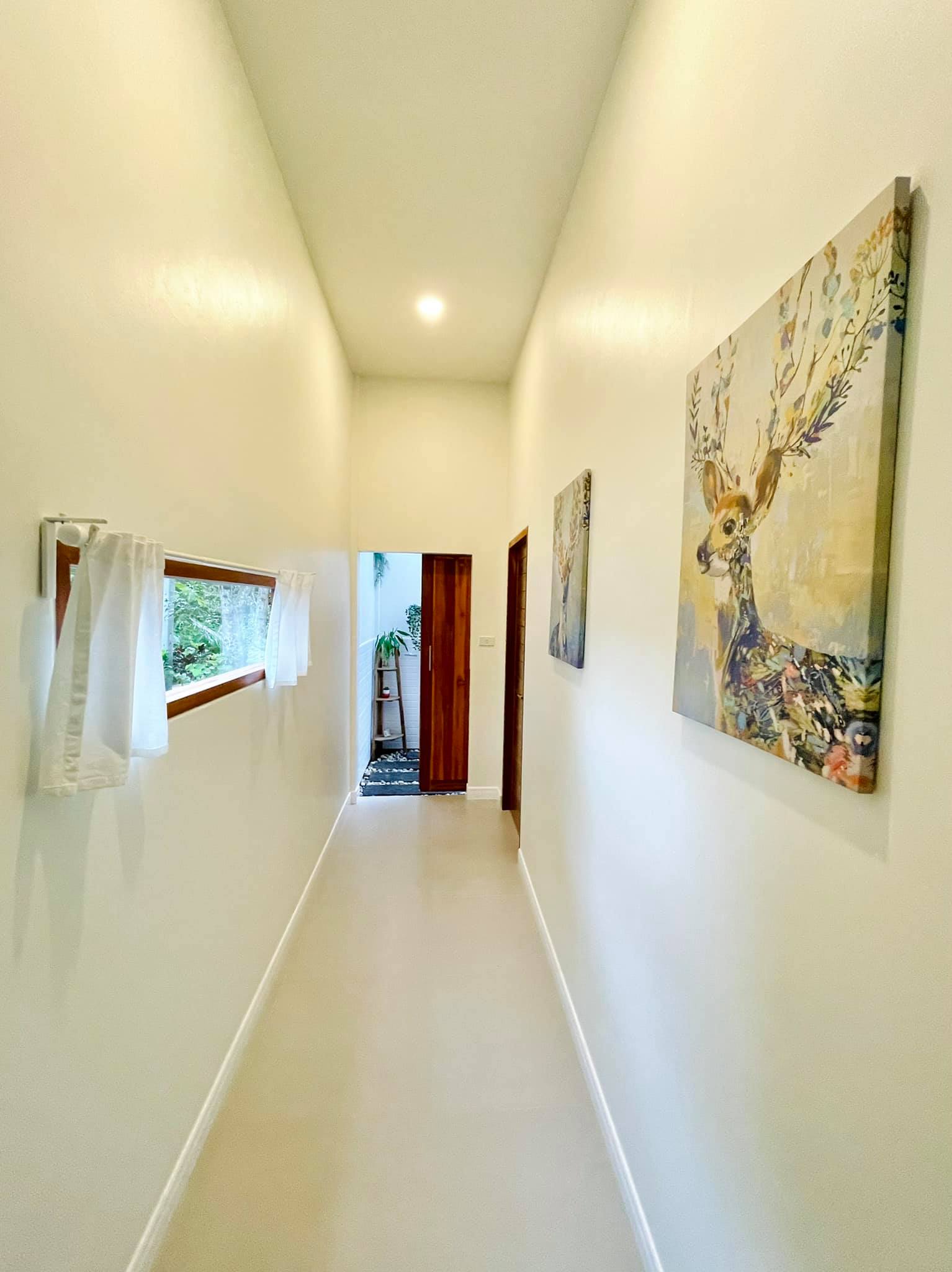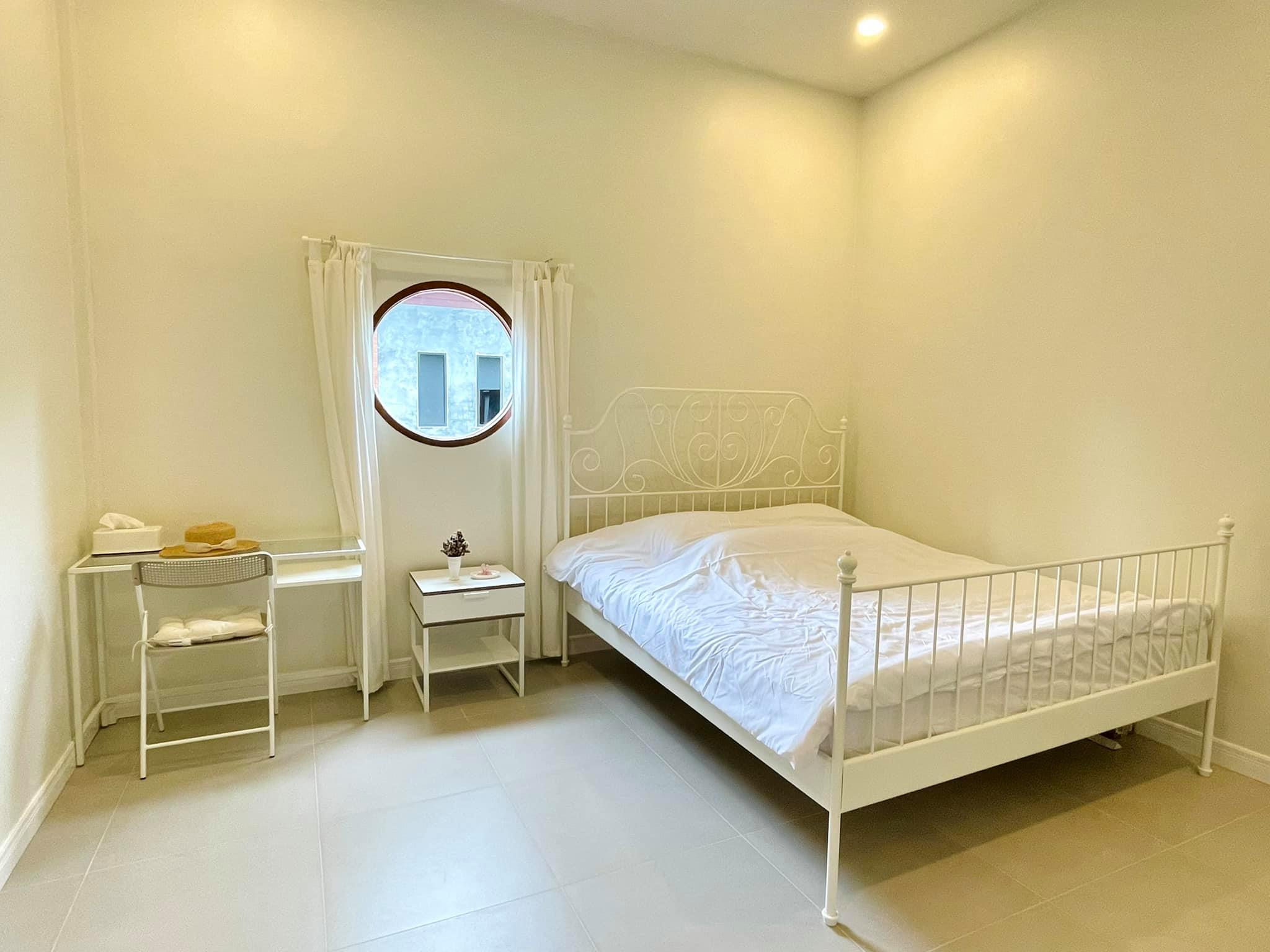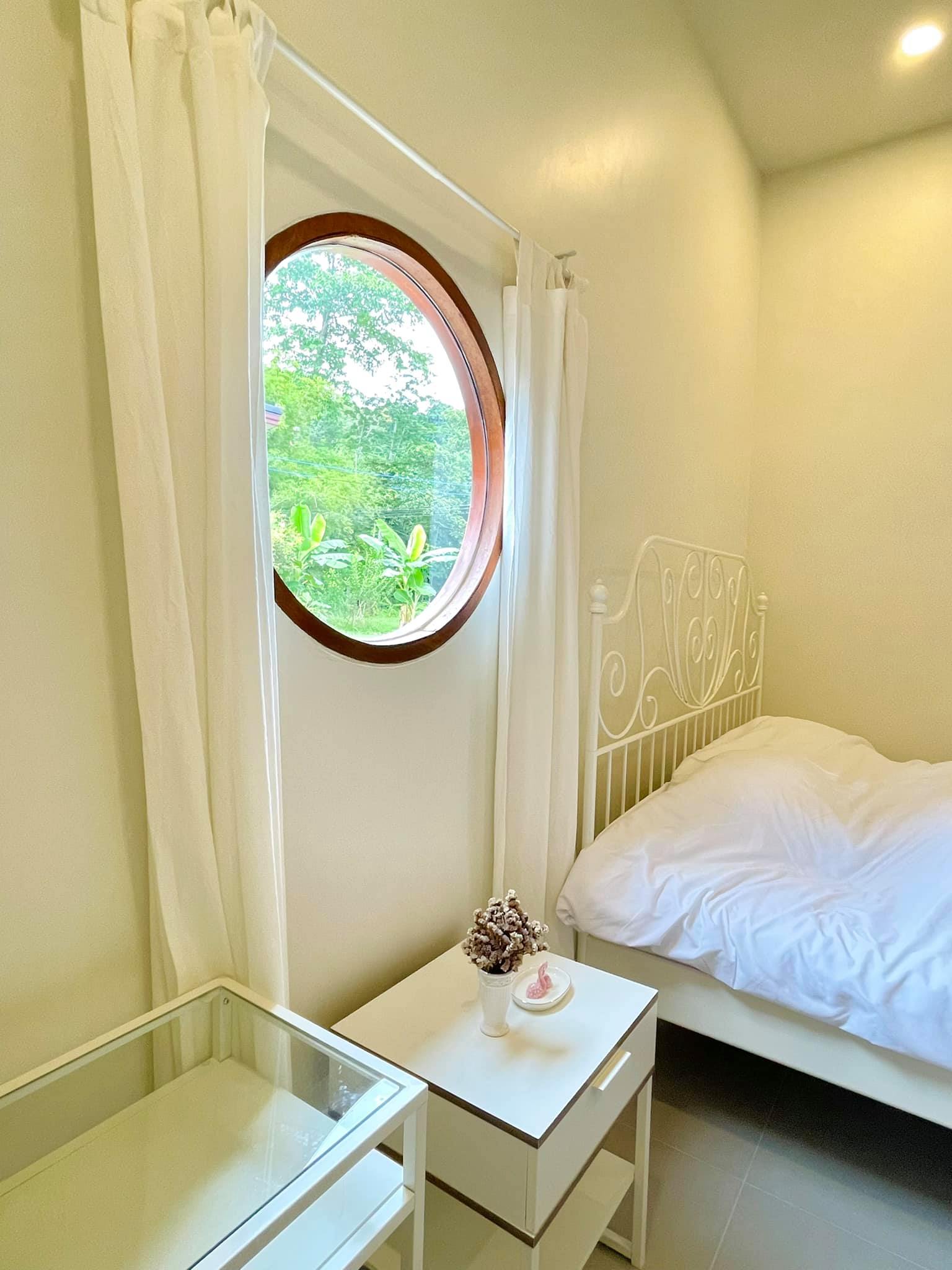 ภายในห้องนอนจะมีรายละเอียดการตกแต่งที่เรียบง่าย ภายในเลือกใช้โทนสีที่อบอุ่น เป็นมุมที่เหมาะกับการหลบมาชาร์จพลังในช่วงวันหยุด