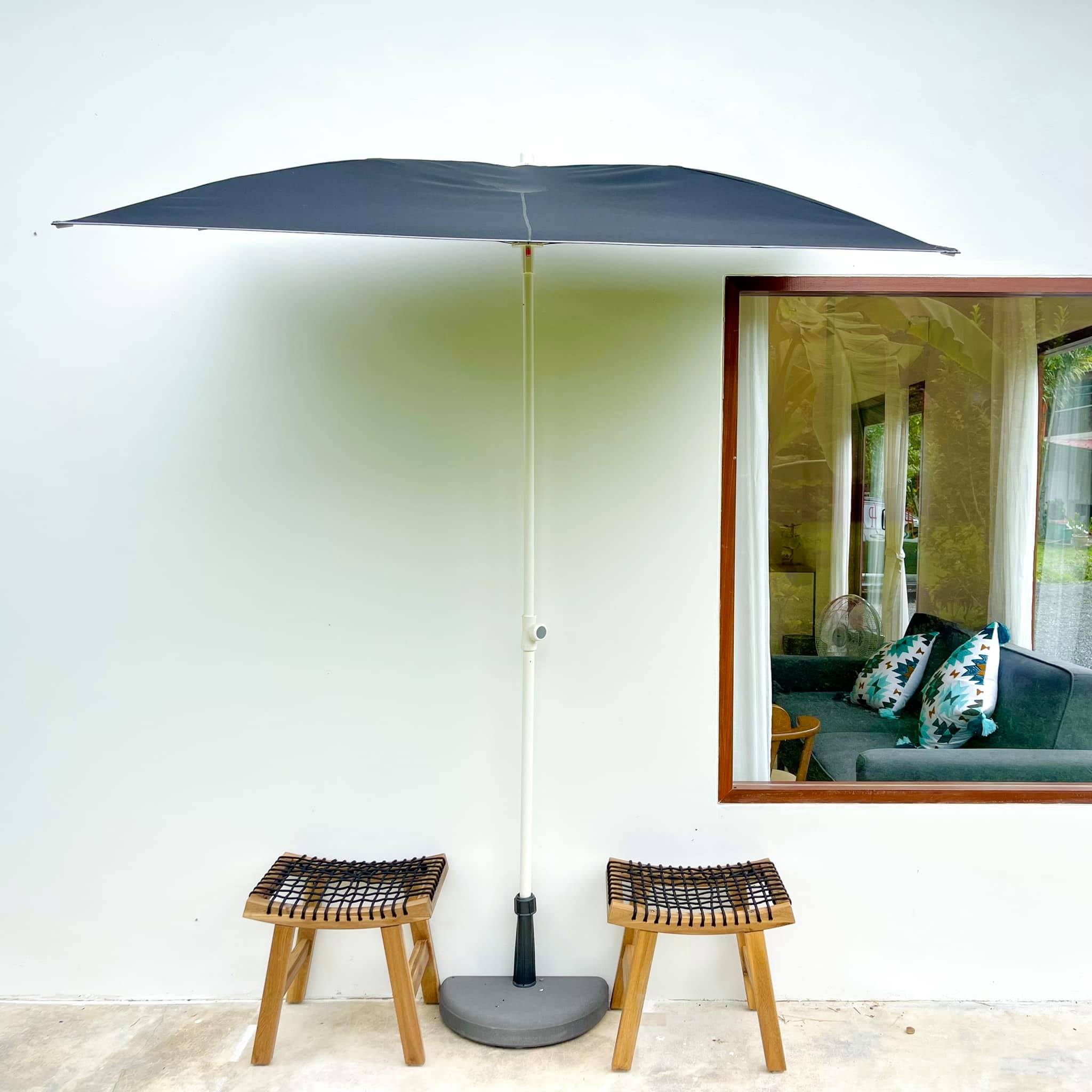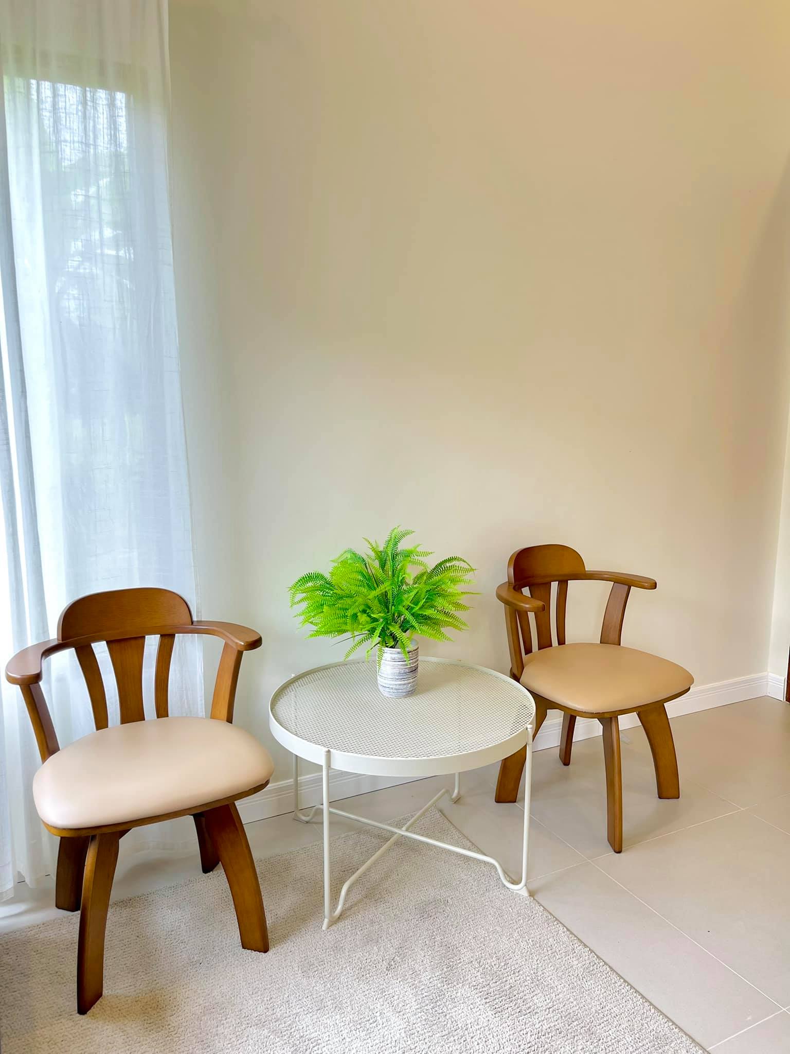 ด้านนอกตัวบ้าน เจ้าของบ้านตกแต่งมุมนั่งเล่นด้วยเก้าอี้และร่มสนาม ซึ่งนอกจากจะเป้นมุมนั่งเล่นชิลล์ ๆ แล้ว ยังเป็นมุมสำหรับการถ่ายภาพที่ดีอีกมุมหนึ่งด้วย