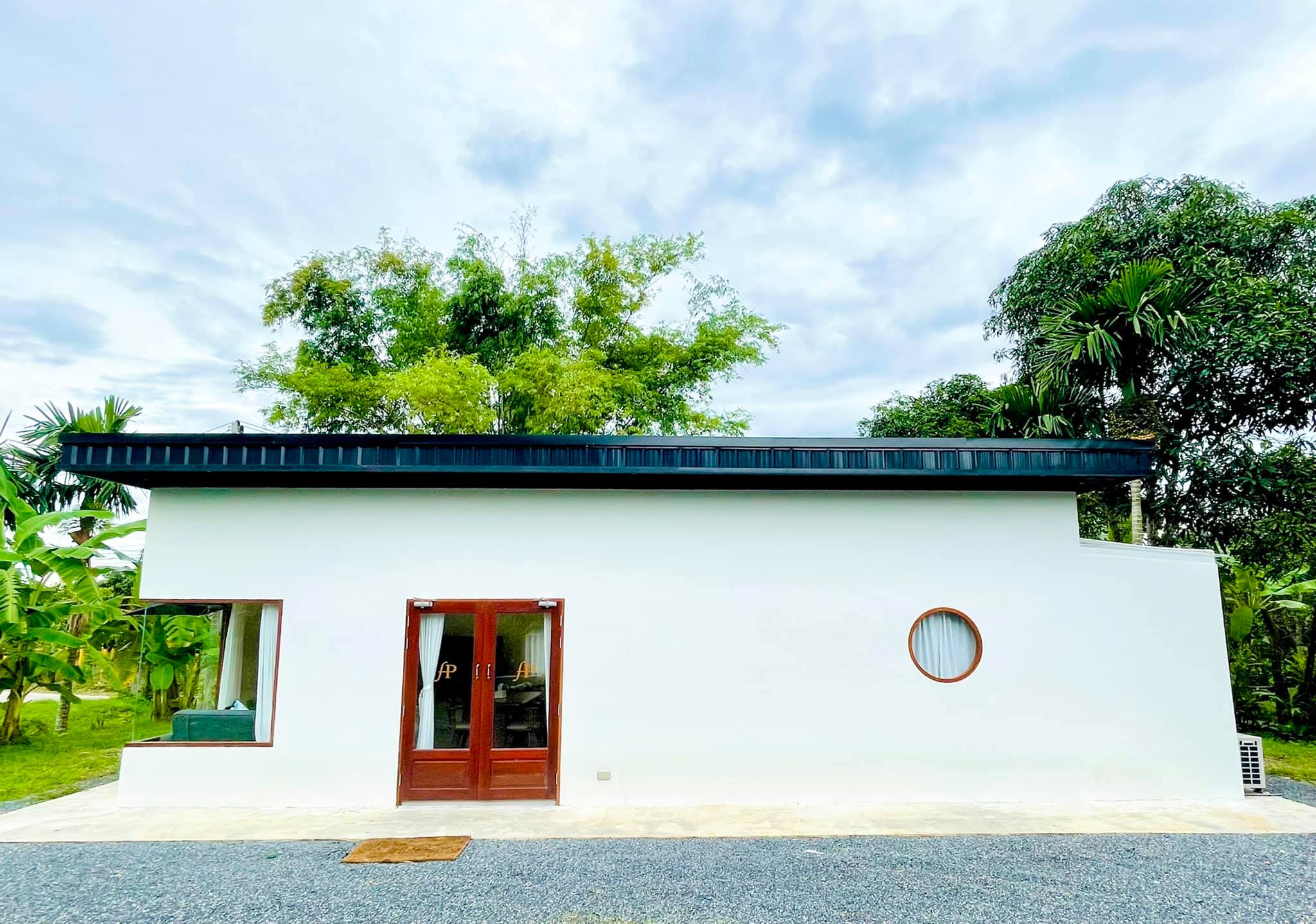 บ้านพักตากอากาศหลังนี้เป็นบ้านชั้นเดียวหน้ากว้าง การออกแบบและตกแต่งจะมีความเรียบง่ายกันตั้งแต่ภายนอก ซึ่งถูกตกแต่งผนังภายนอกในโทนสีขาวครีม ตัวหลังคาจะเป็นเมทัลชีทที่มีชายคาช่วยป้องกันบ้านจากแดดและฝนได้เป็นอย่างดี