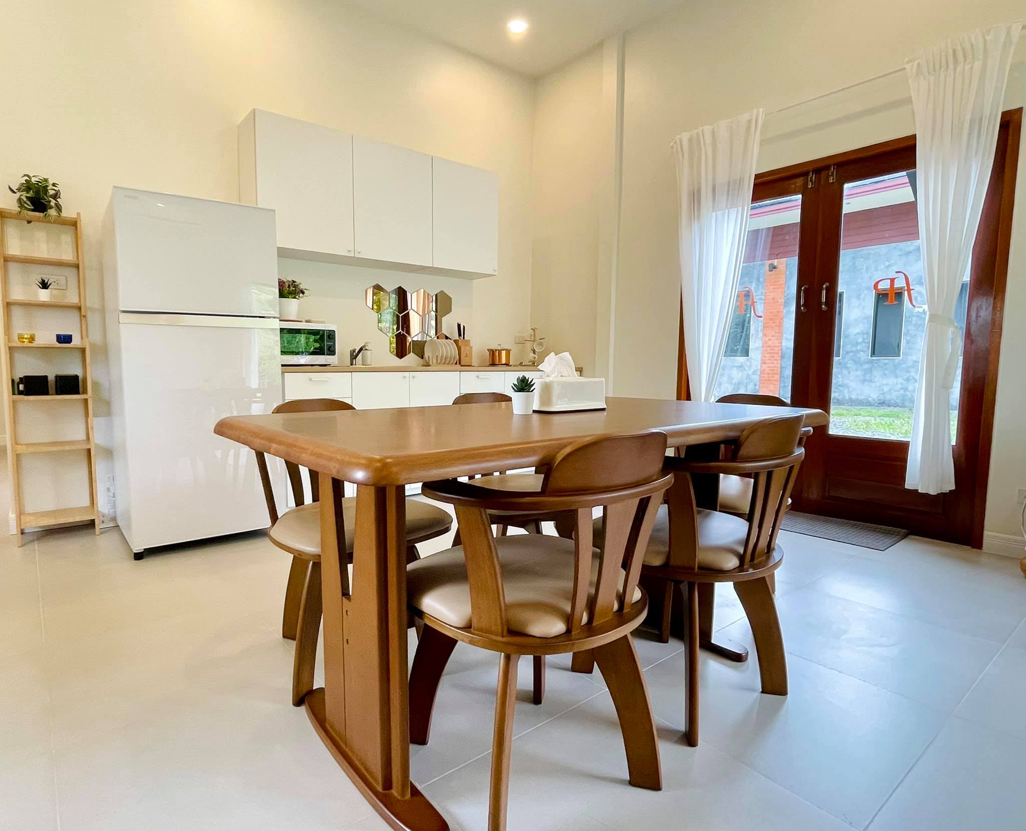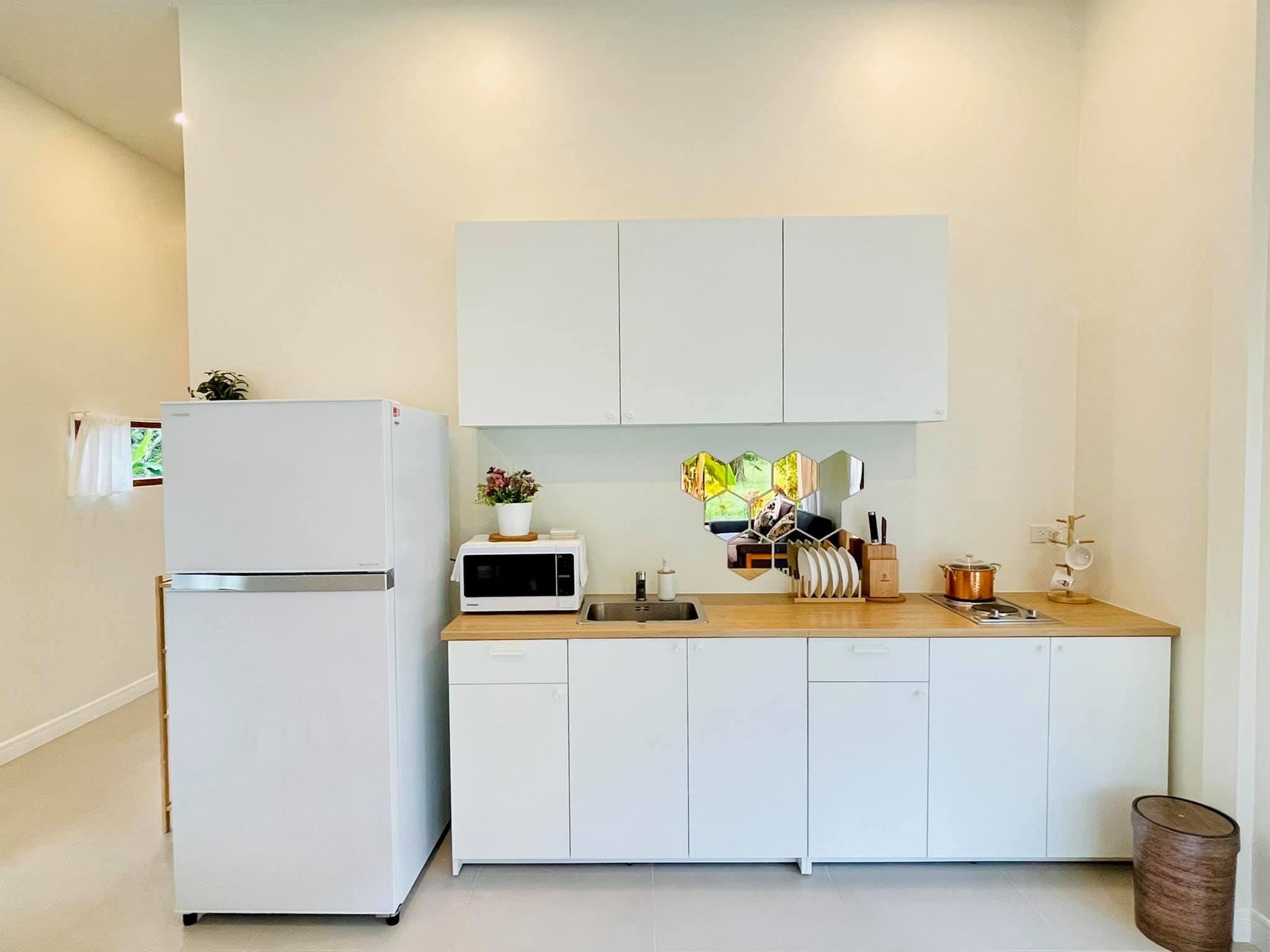 บริเวณห้องครัวถูกตกแต่งในสไตล์มินิมอล โดยจะมีสิ่งอำนวยความสะดวกที่ครบครันทั้งเคาน์เตอร์ครัวและตู้เย็น จึงสามารถประกอบอาหารได้อย่างเต็มที่
