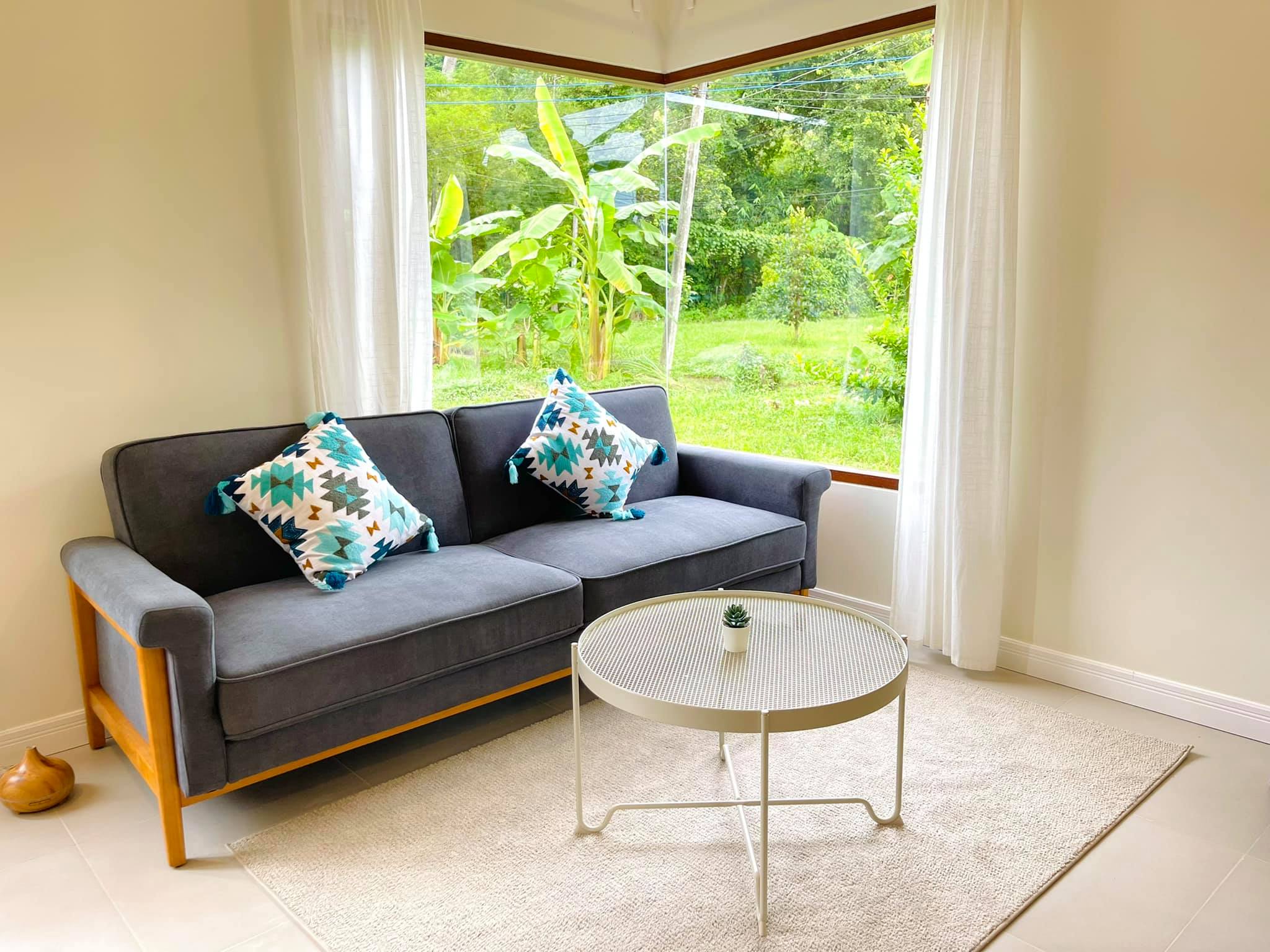 ภายในห้องนั่งเล่นหลัก ถูกจัดมุมด้วยโซฟาที่จัดวางไว้ใกล้ ๆ กับหน้าต่างกระจกใส จึงให้บรรยากาศที่สว่างสดชื่น สามารถผ่อนคลายอิริยาบถ เอนกายตรงมุมนี้ได้ทั้งวัน