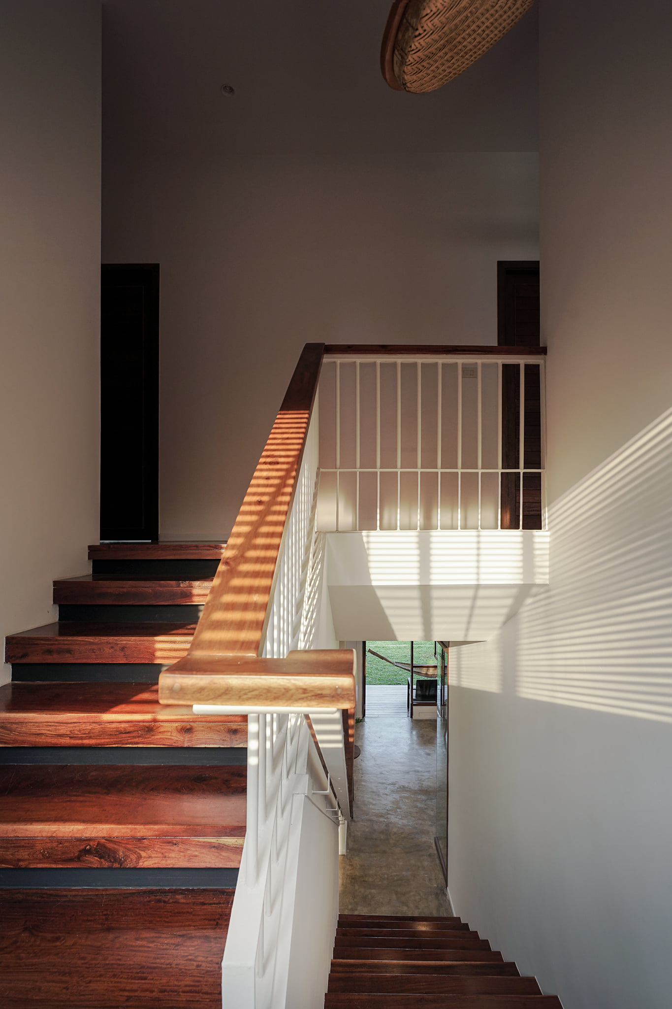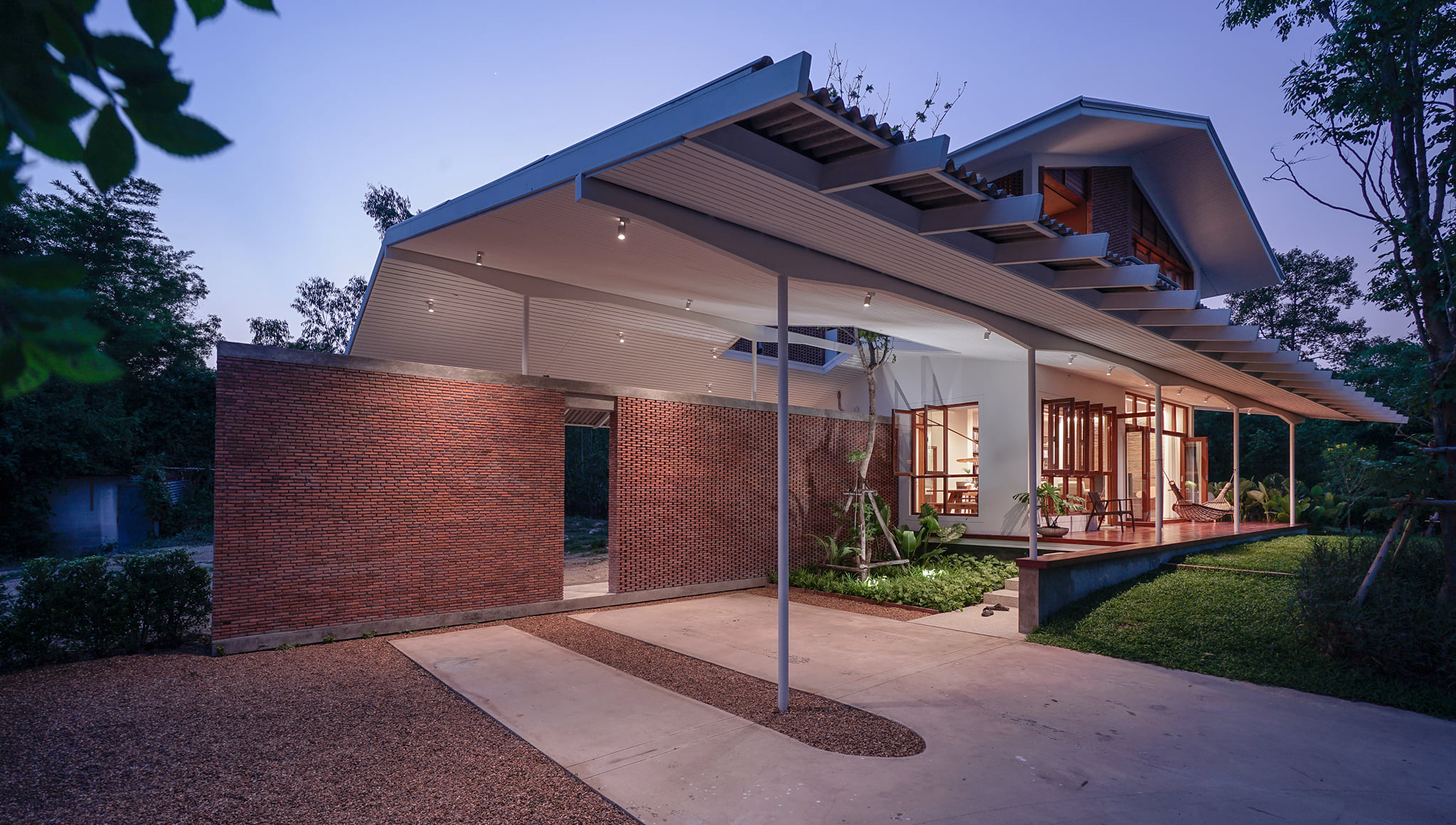 ในส่วนคอนเซ็บต์ของบ้านที่ให้บรีฟสถาปนิกไป คือ อยากได้บ้านที่อบอุ่น ไม่ติดหรู มีกลิ่นอายอีสาน แต่เราก็ไม่ได้อยากให้อีสานจ๋า อยากได้ความร่วมสมัยด้วย ในส่วนของวัสดุ ขอเป็นไม้ กับอิฐไม่เอาเหล็ก เข้าใจว่าไม้ราคาแพง ดังนั้นอาจจะเอาปูนเปลือยมาช่วยลด cost ในบางห้อง แล้วก็เราเป็นคนชอบเพดานสูง ชอบบ้านลมโกรก ชอบแสงเยอะ ๆ ชอบพัดลมเพดาน ก็ให้โจทย์นี้ไป